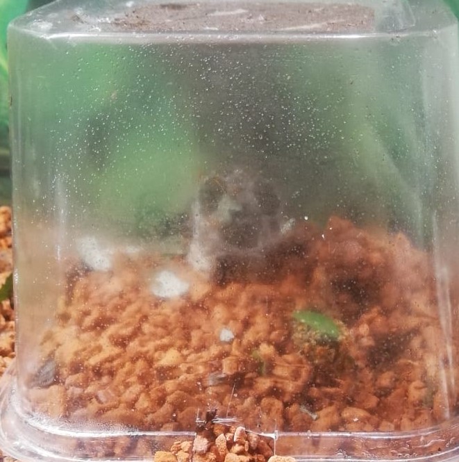 Ist schwierig zu sagen. Sehr viele werden es nicht sein, wobei man sich da täuschen kann, da die Pilzgärtnerinnen sehr klein sein können. Wenn man dann noch durch ein leicht beschlagenen Kunststoffbecher schaut, wirds mit zählen schwierig. Dennoch gab es Hoch's und Tief's. Gesamt würde ich sagen habe ich wohl gegen sie gearbeitet, weil das Klima unter der Kuppel nicht gut genug war. Davon gehe ich zumindest mal aus.