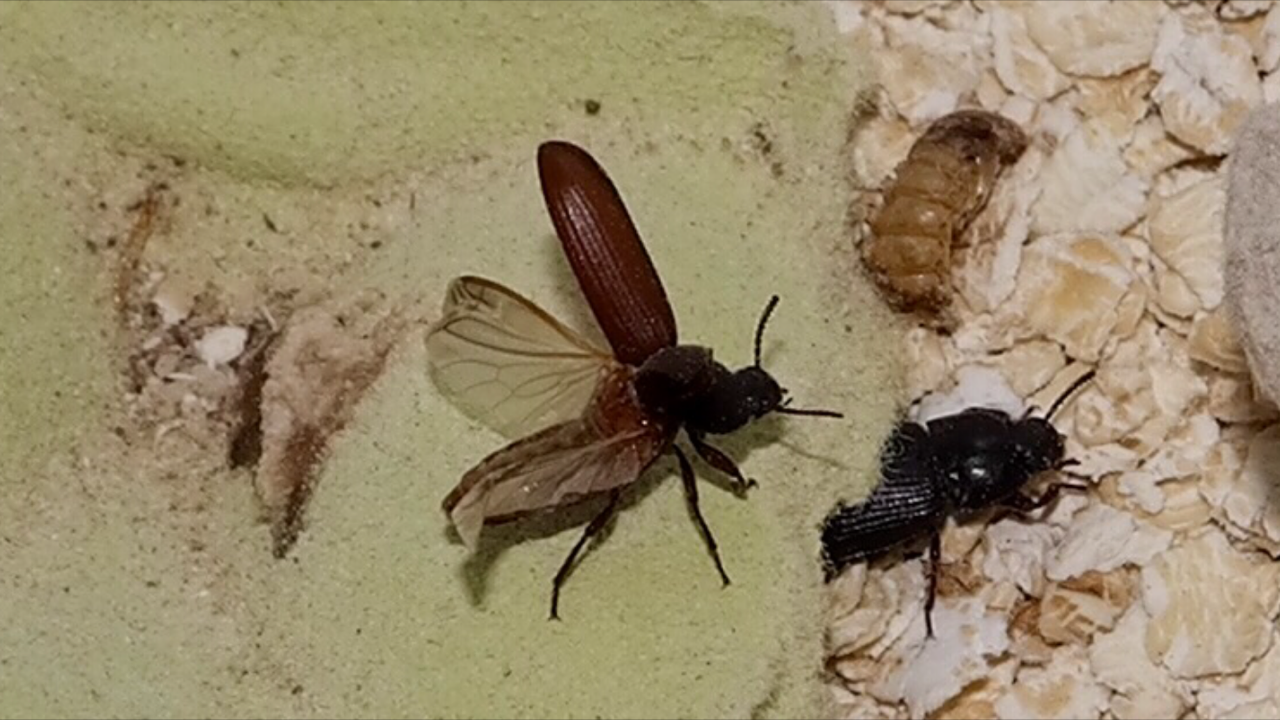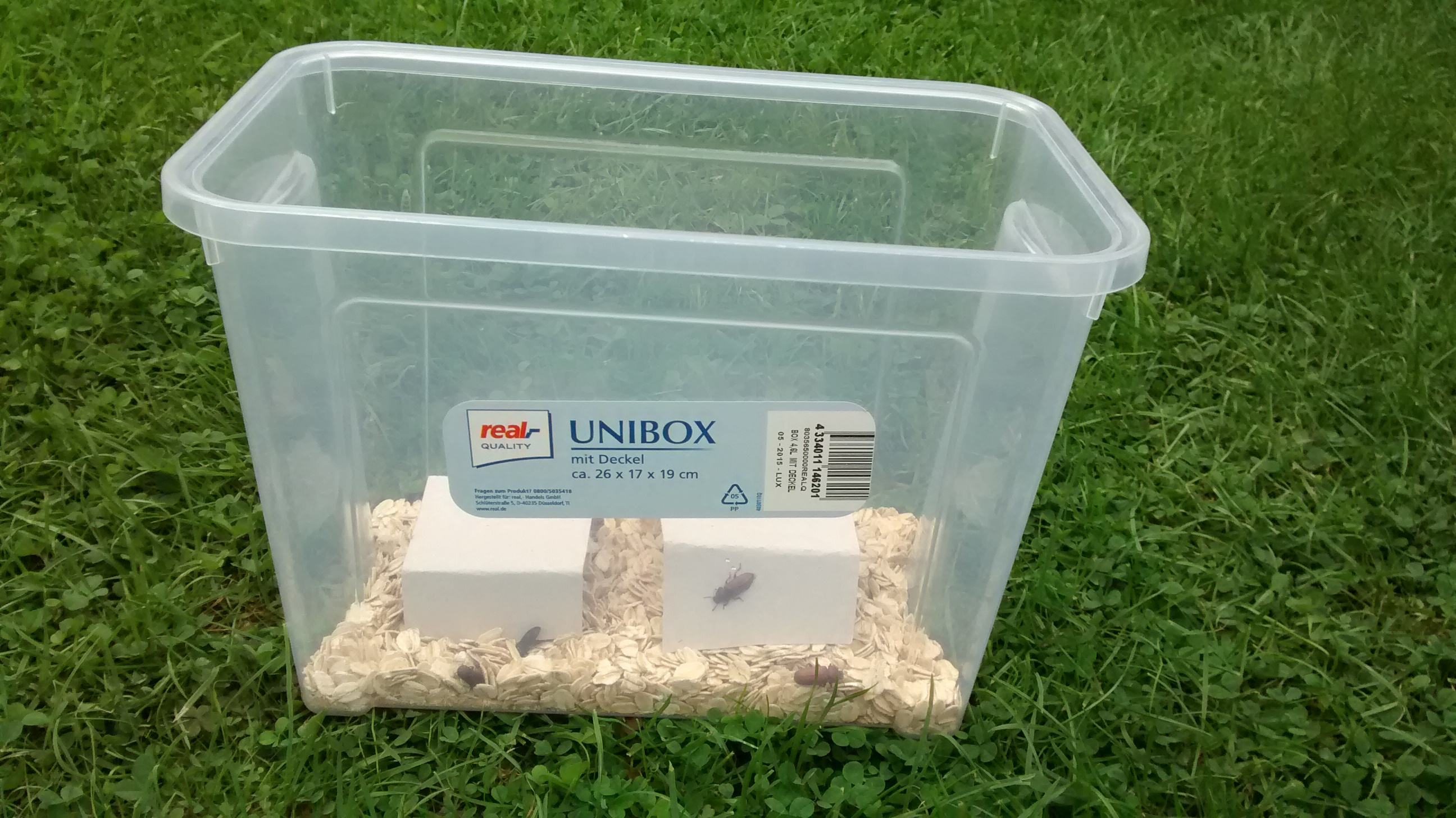 . Ich habe den Behälter dann nochmal mit einigen Käfern besetzt, wie auf den Fotos zu sehen, so dass noch mehr Eier gelegt werden und ich bald das Substrat in einen der großen Behälter geben kann, um dann dort wiederum die