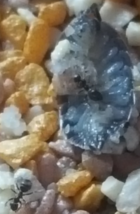 Auch habe ich beobachtet, dass sich die Ln gegeseitig füttern. Tun das Eure auch? Immer wenn eine Arbeiterin den Tropfen Honigwasser entdeckt, saugt sie sich so voll, dass das Hinterteil richtig hell wird und wenn sie dann im Nest ist, dann füttert sie ihre Artgenossen einschl. der Königin. Das ist wirklich interessant zu beobachten. Auch wie schnell sie sich den Eingang ins Nest verkleinert haben, war total spannend. Quasi über Nacht, haben die den kompletten Umfang des RG bis auf einen kleinen Spalt verschlossen. Wahnsinn!!!![]()