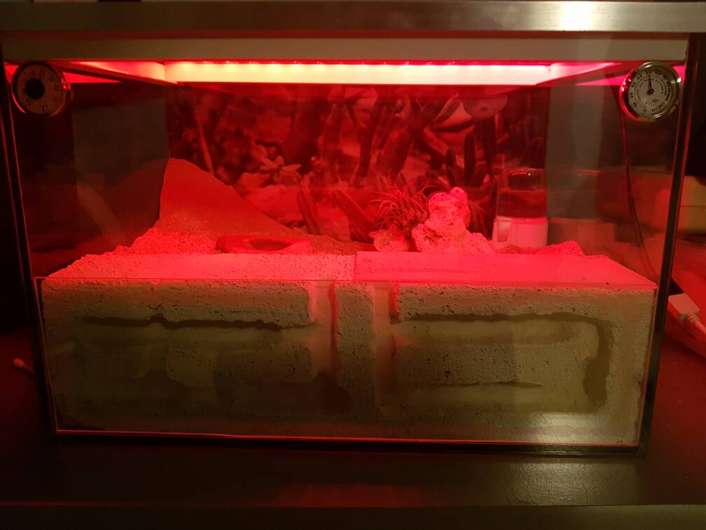 Habe noch Links und Recht jeweils einen Thermometer und Hydrometer angebracht und noch für die Optik LEDs. Man kann die Farbe je nach Bedarf ändern. Die Farbe sollte eigentlich eher bei rot bleiben.