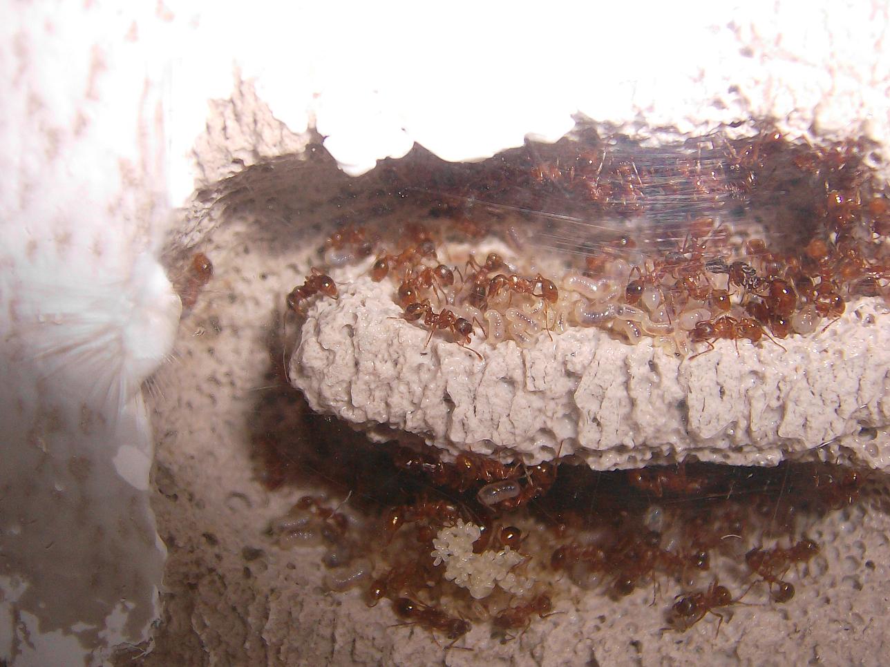 Ja da würd ich mir Gedanken machen. Ich habe leider kein Ytong Stück mehr in das ich meine 1000 Frau starke Myrmicasp Kolo mit etwa 10 Gynen reinstecken könnte. Ich geb dir einen Rat, gliedere nicht mehr Gynen ein (hab ein paar vom Schwarmflug über die Zeit eingegliedert), die Vermehren sich wie nochmal was und ich muss meine Farm bauen...