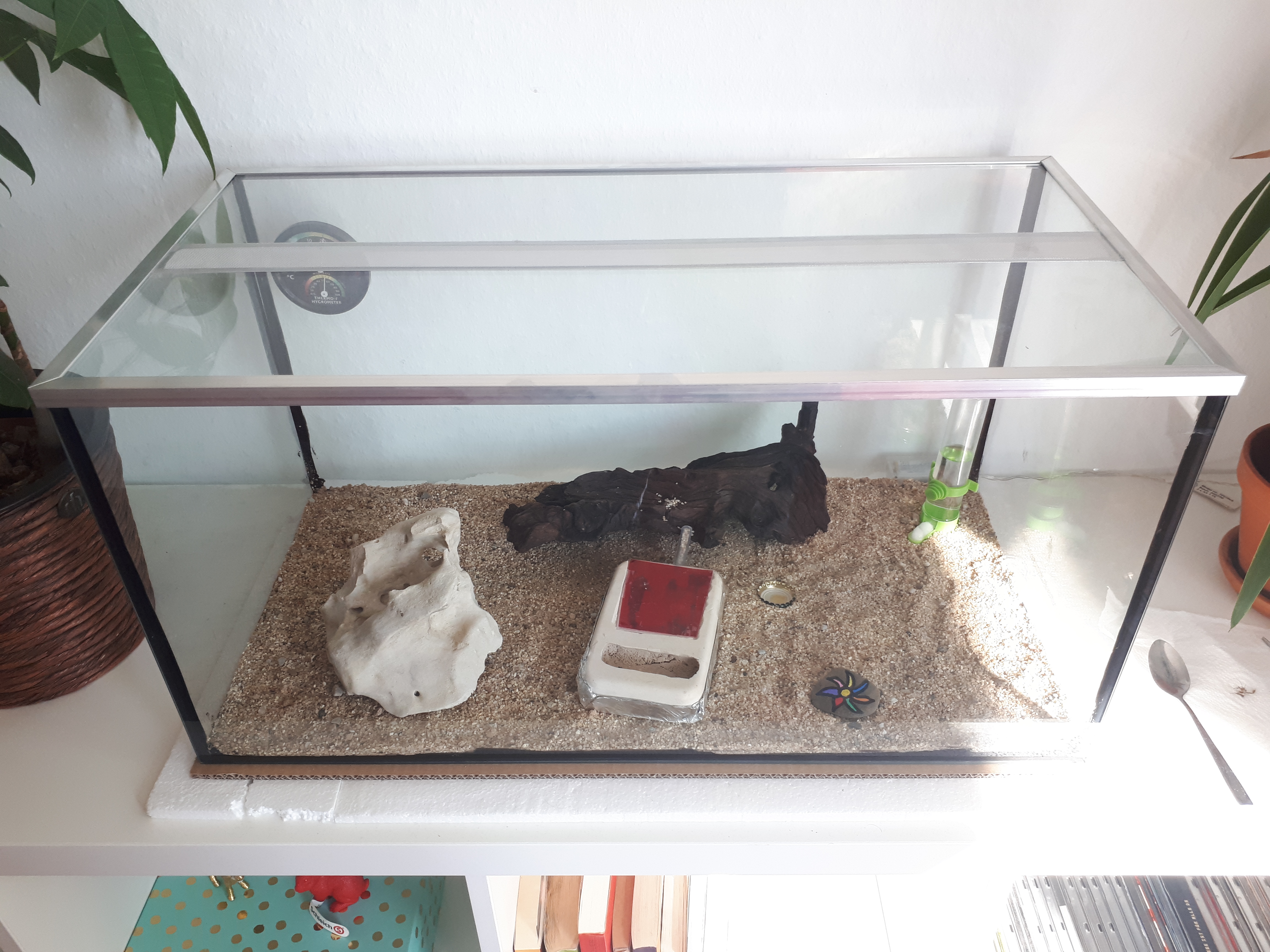 Gegen die Störungen durch ein Anheben des Deckels werde ich vorgehen, indem ich an einem festen Wochentag, an dem wir auch putzen und saugen, was tendenziell ja auch Vibrationen verursacht, Futter und Wasser wechsle und das Nest befeuchte. (Sie mögen es ja eher trocken, reicht es da, ein mal den Befeuchtungsgraben des Nestes voll zu machen pro Woche? Kann das sooo schwer einschätzen.)