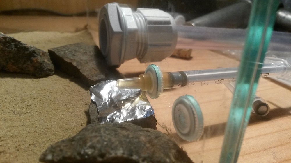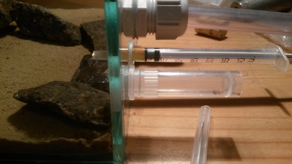 Dennoch habe ich eine erste Frage hierzu. Ich tue mich derzeit beim befeuchten noch etwas schwer, kann aber momentan ja noch schön experimentieren. Habe anfangs über ein Drainage Rohr soviel Wasser eingefüllt, dass eine farbliche Veränderung der Sand-Lehm Mischung etwa bis zur Hälfte der Farm erkennbar war (sowohl die Hälfte der Sand-Lehm Mischung wie auch die Hälfte der Seramis Schicht war somit feucht, der linke Teil der Farm ist komplett trocken geblieben). Nach ein paar Tagen ist der Verfärbung zurück gegangen, in der halben Seramis Schicht hat sich aber Kondenswasser niedergeschlagen. Also ein deutliches Anzeichen für eine Überbewässerung. Als ich dann die Heizmatte angeschlossen habe, hat sich noch deutlich mehr Kondenswasser niedergeschlagen. Nun stellt sich mir die Frage, wie ich erkenne, wann ich wieder bewässern soll. In der Sand-Lehm Schicht ist keinerlei farblicher Unterschied mehr erkennbar, allerdings befindent sich in der Seramis Schicht Kondenswasser an der Scheibe.
