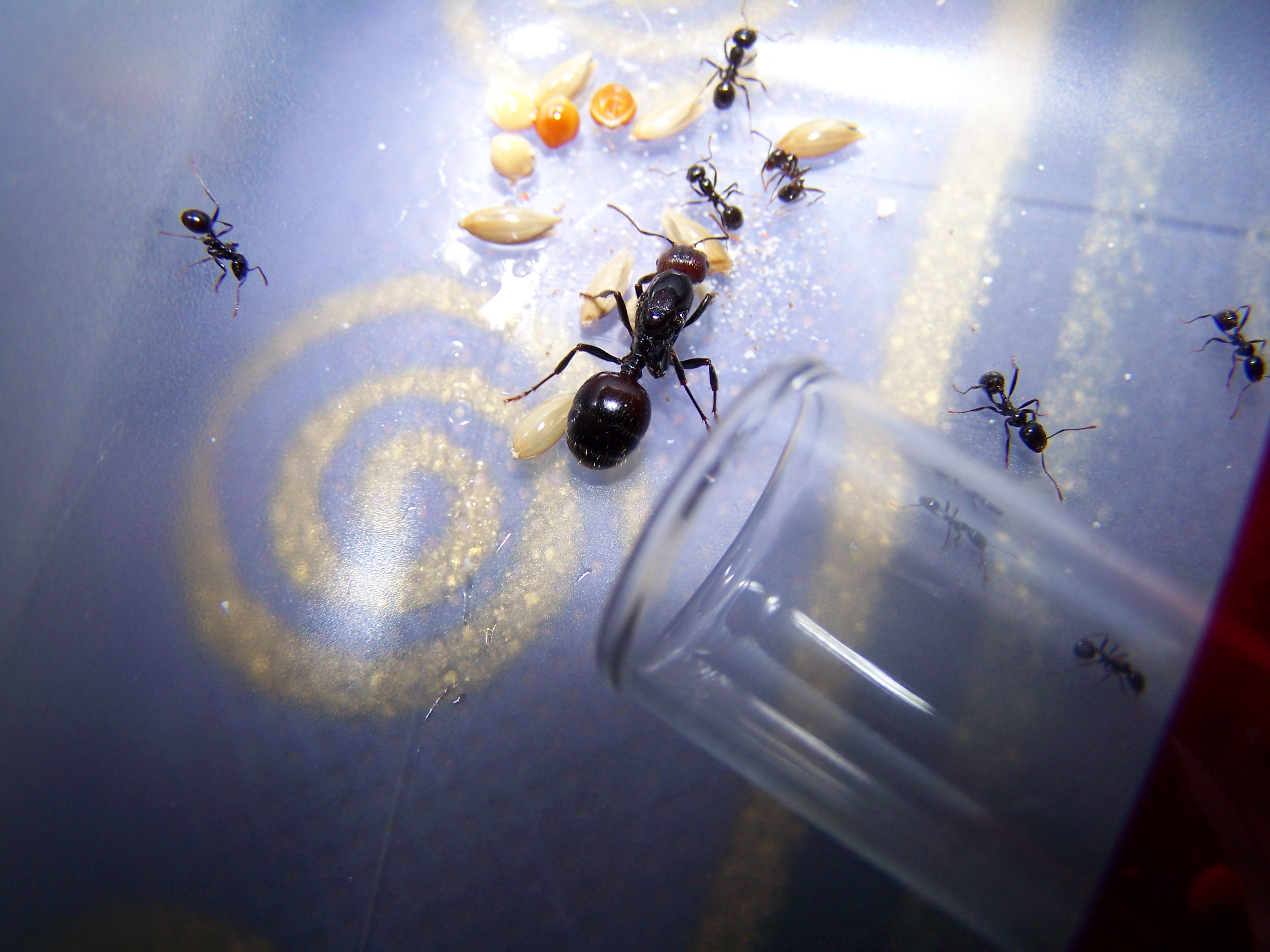 ich habe heute meine Messor barbarus mal beim Mittagessen bestaunen dĂŒrfen. Ich habe mir angeguckt, wie sie ihre Körner knacken und schĂ€len. Leider sind die Fotos von ihrem "Ameisenbrot" nichts geworden