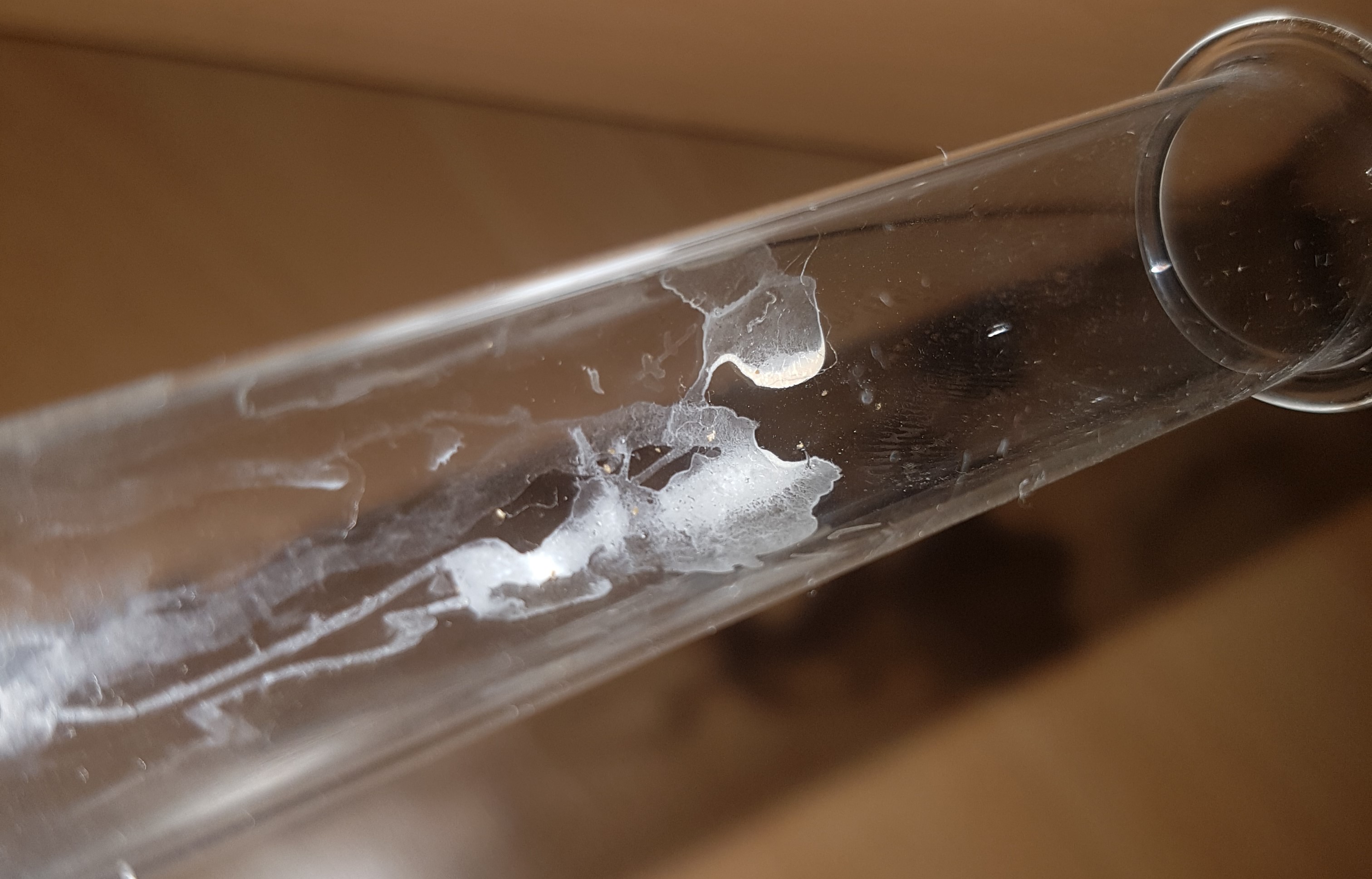 Das RG habe ich bis heute nicht geöffnet es kann theoretisch nur von derGyne kommen. Die Watte / Baumwolle ist Biobaumwolle, schneeweiß und geruchslos. War auch vergleichsweise Teuer deswegen denke ich nicht das das Zeug von der Watte kam. Die RG sind aus der Apotheke und aus Glas, völlig rein von jeglichen Verschmutzungen wenn ich sie Verwende.
