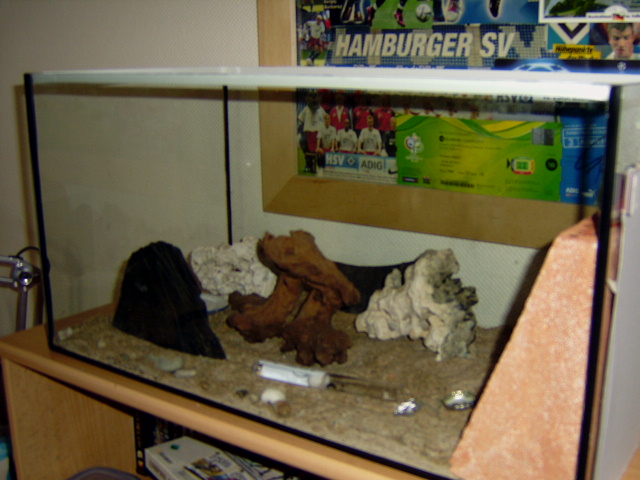 Nachdem wir uns über die Ameisenhaltung informteert hatten, ging für mich und meinen Vater die Suche nach einer geeigneten Unterbringung für die Ameisen los. Als erstes stießen wir auf die Startersets aus dem Antstore. Nach längerem Hin und her entschieden wir uns aber, ein altes Aquarium (60x30x30) als Formicarium zu verwenden. In dieses Foricarium integrierten wir auch gleich das Ameisennest, dass wir aus Ytong-Stein fertigten.