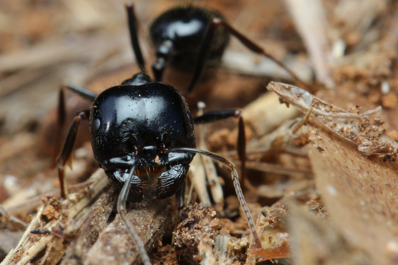 4. Frontale Ansicht vom Kopf einer M. wasmanni. Die glatte OberflĂ€che mit reichlicher Punktierung erscheint hier groĂflĂ€chiger als bei M. capitatus.
