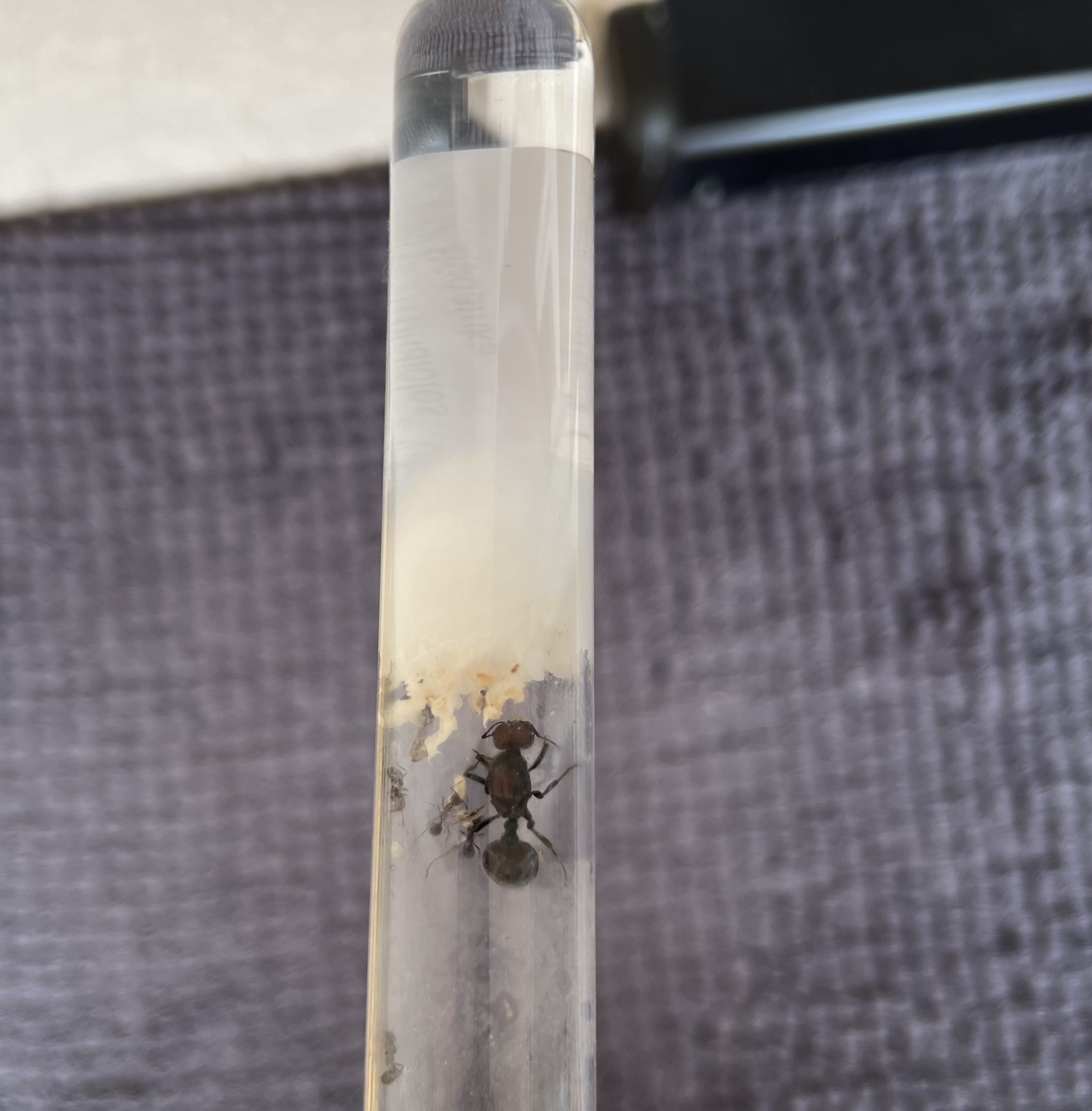 Ich habe nach dem auspacken einige SchnappschĂŒsse gemacht und werde sie erstmal in Ruhe lassen. Die Kolonie ist noch sehr klein. Ich bin gespannt, wie sie sich entwickeln wird. Bei der nĂ€chsten Gelegenheit werde ich bessere Bilder von dieser wunderschönen Ameisenkolonie teilen.