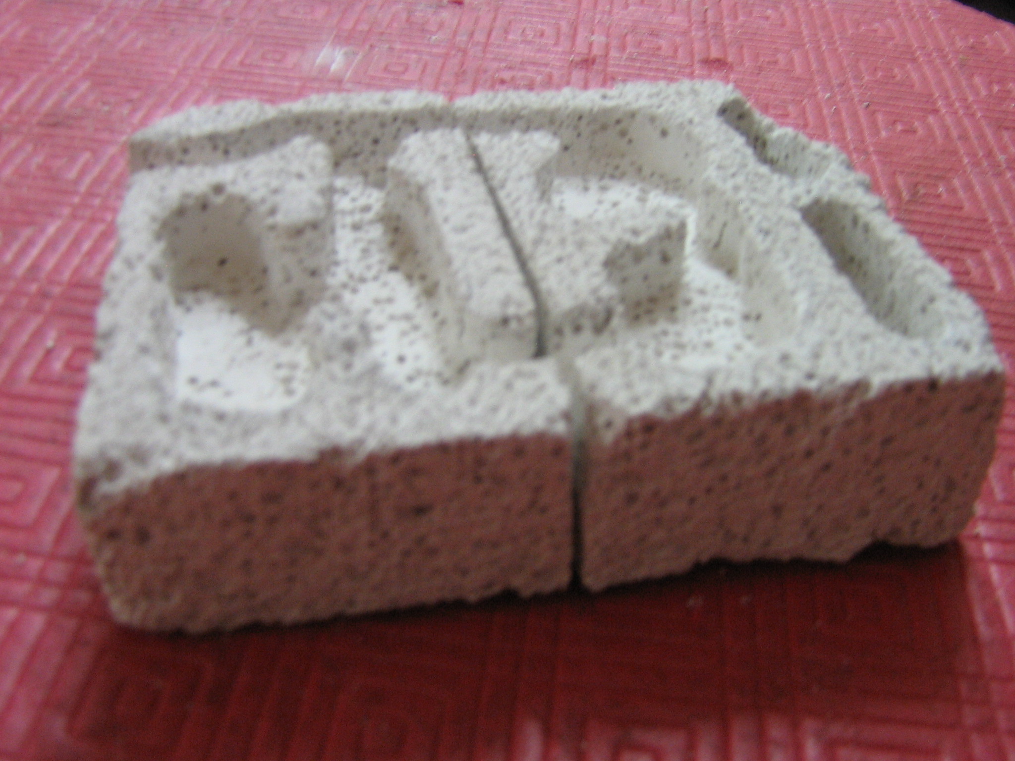 Zuerst habe ich den Ytong block zurecht gedremelt und in dann (Achtung nicht erschrecken!:fettgrins:) mit roher Gewalt(Ja ich weiß, das ist etwas übertrieben:spin2:) auseinander gesägt. Nun habe ich die beiden Nesthälften wieder mit Silikon zusammengeklebt und trocknen lassen. Das Prinzip ist folgendes: