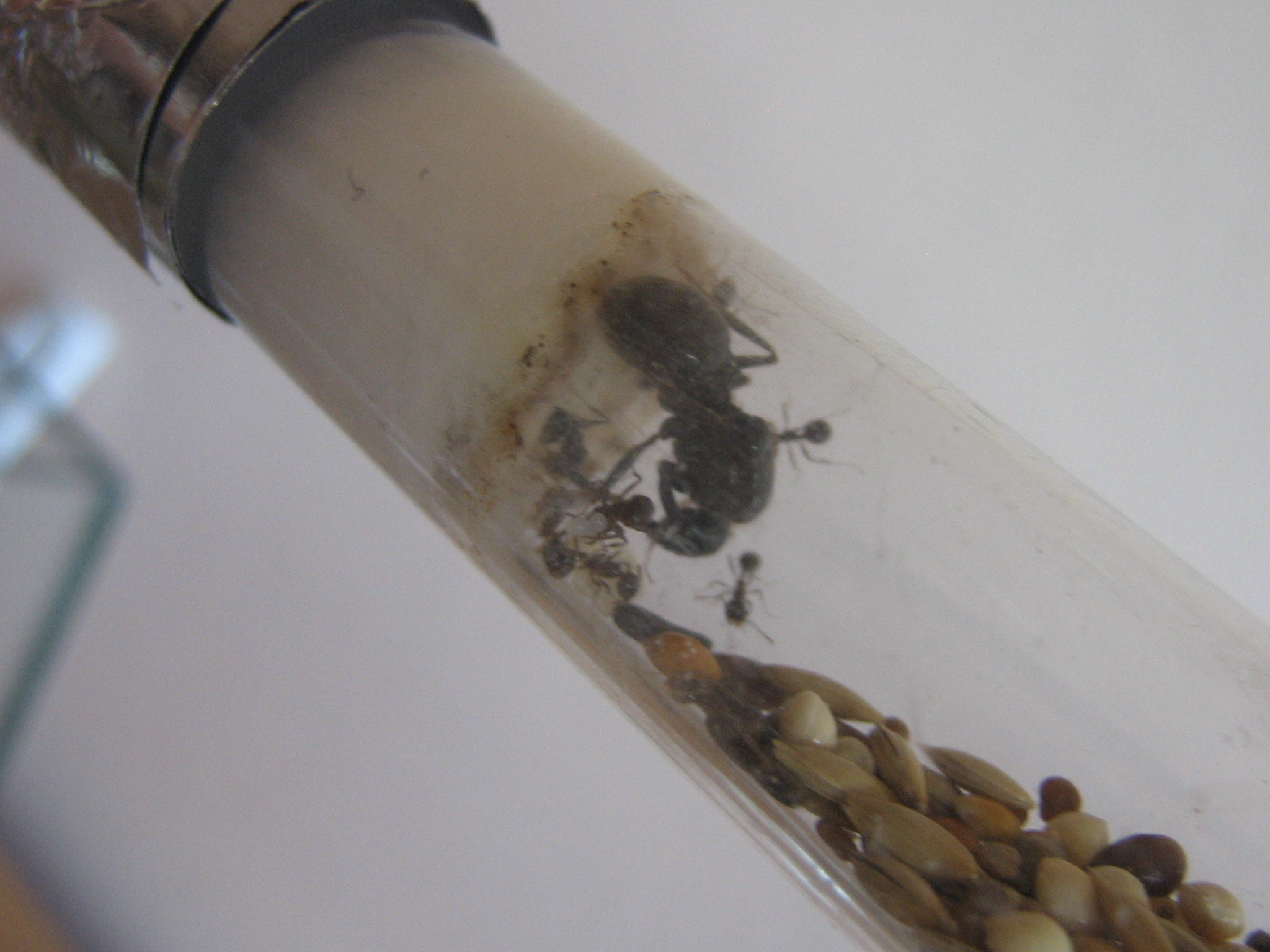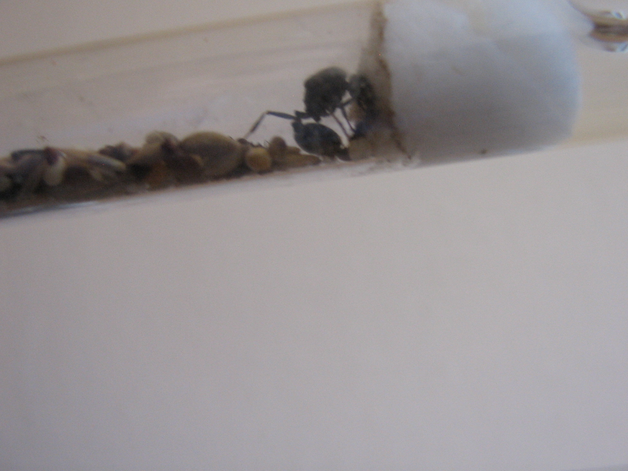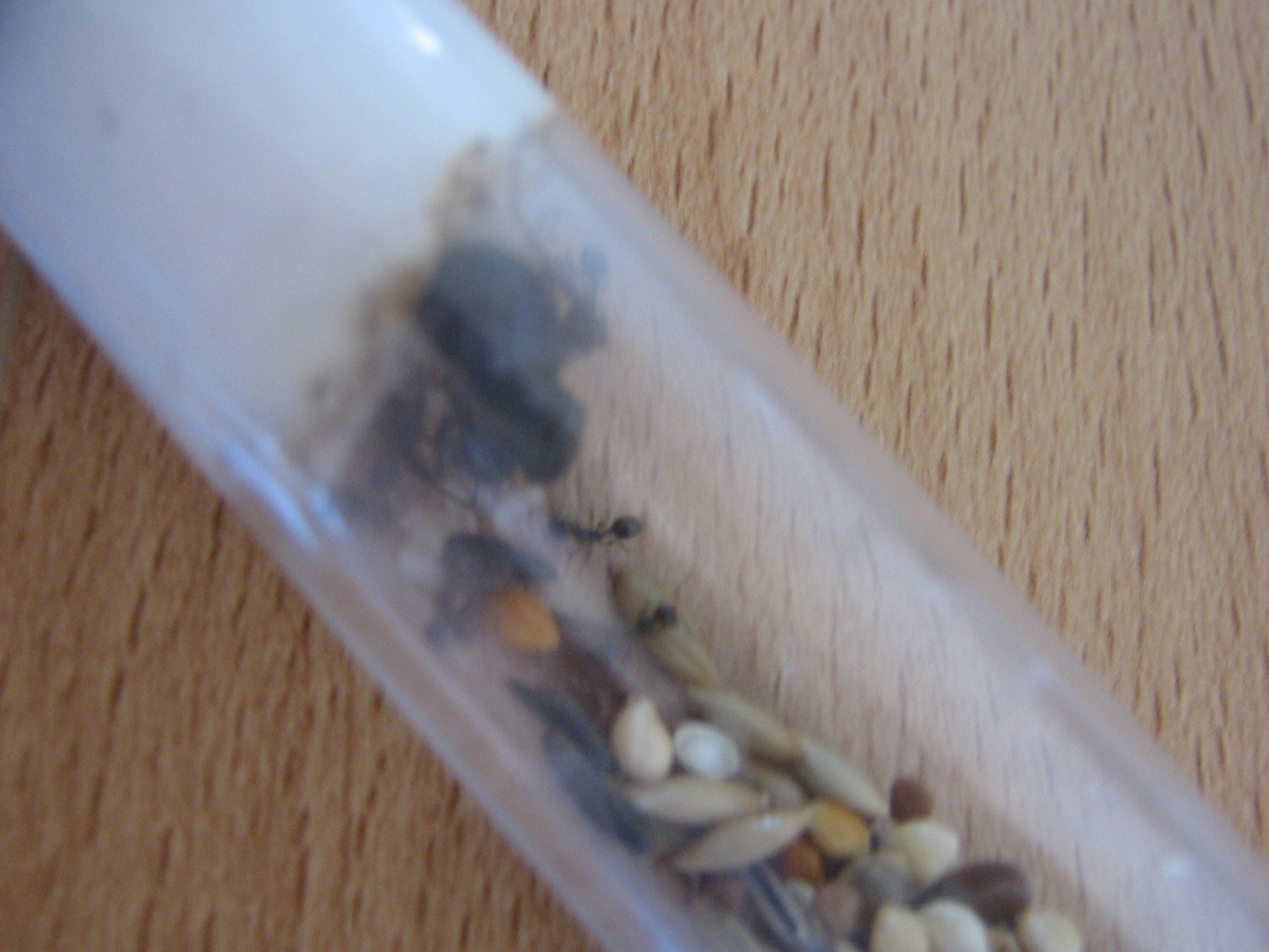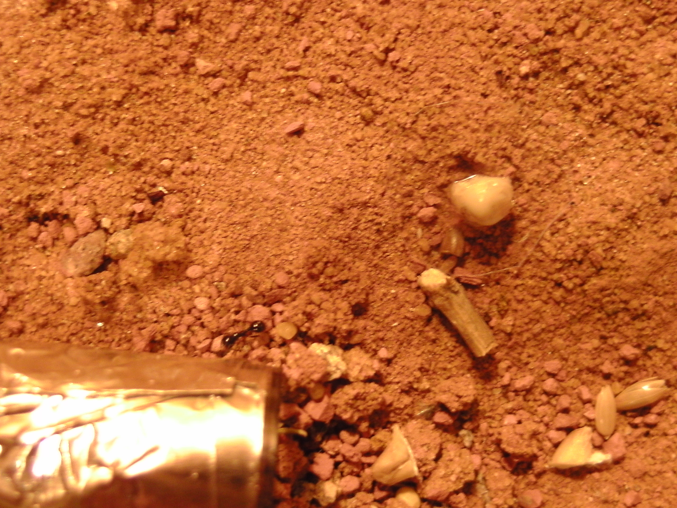 Das Ytong nest haben sie leider noch nicht entdeckt. Aber dass liegt wohl daran, dass sie im Moment nicht sonderlich aktiv sind (Ich sehe nicht mal eine Arbeiterin pro Tag!). Sie haben nämlich alles was sie brauchen: Körner!;)