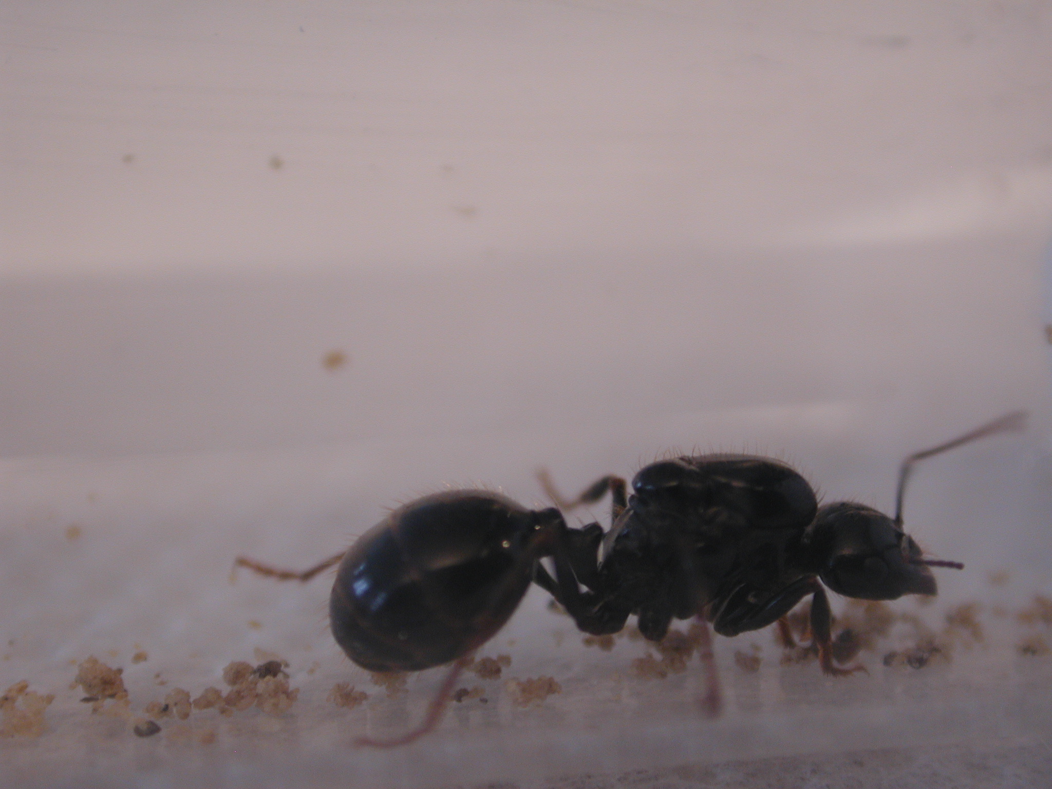 Wieso hast du den vorgeschriebenen Text nicht ausgefüllt? Da hätte man das Ratespiel ein wenig eingrenzen können! Die Königinnen von Messor structor, die ich bisher gesehen habe, waren alle etwa 10mm lang und vergleichsweise grazil gebaut.
