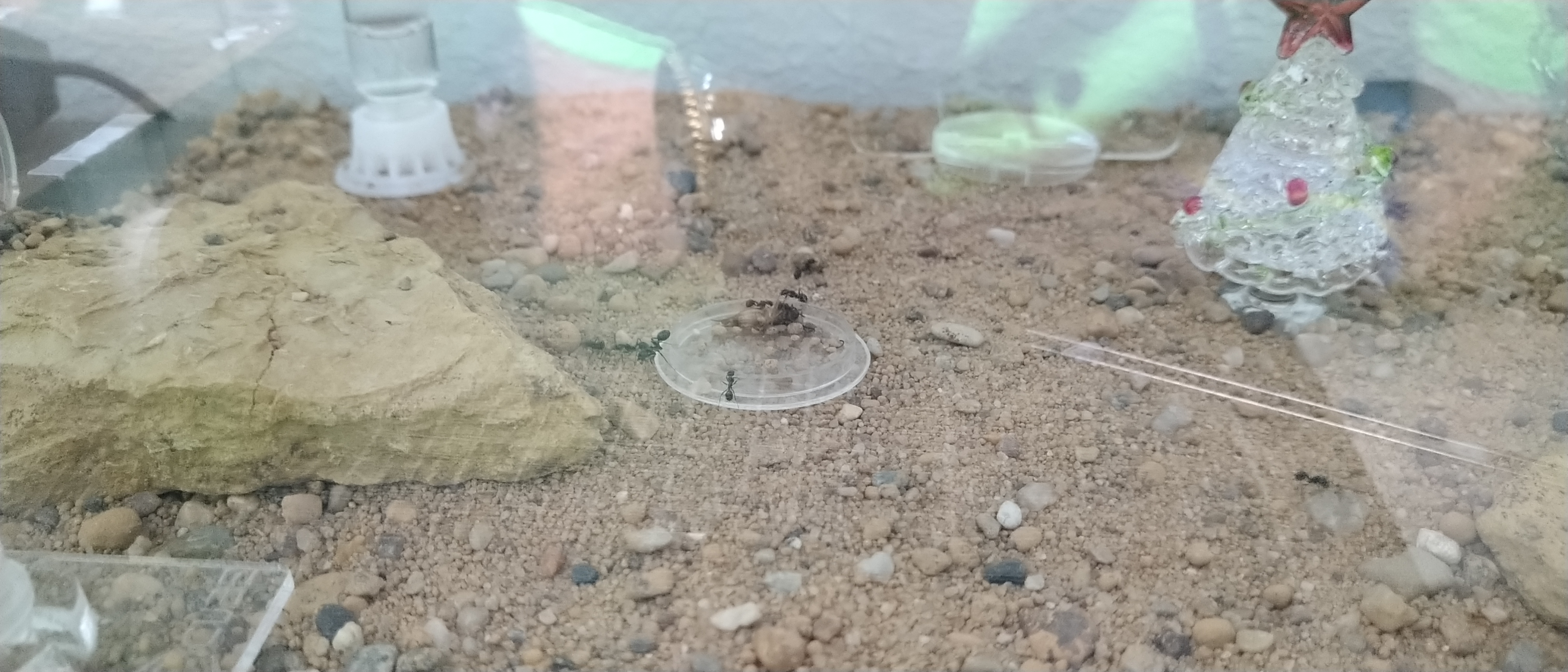 Ich hab nur 1mal pro Woche rein gekukt, das halte ich heute noch so. Außer es gibt ein driftigen Grund. Ist ein bisschen schwierig am Anfang, aber ich hab das GefĂŒhl das das Ă€nderst nicht geht. Messor orientalis legt das Nest normalerweise 2m unter der Erde an, ich vermute daher kommt die Li Lichtempfindlichkeit im Nest. Außerhalb ist es egal.