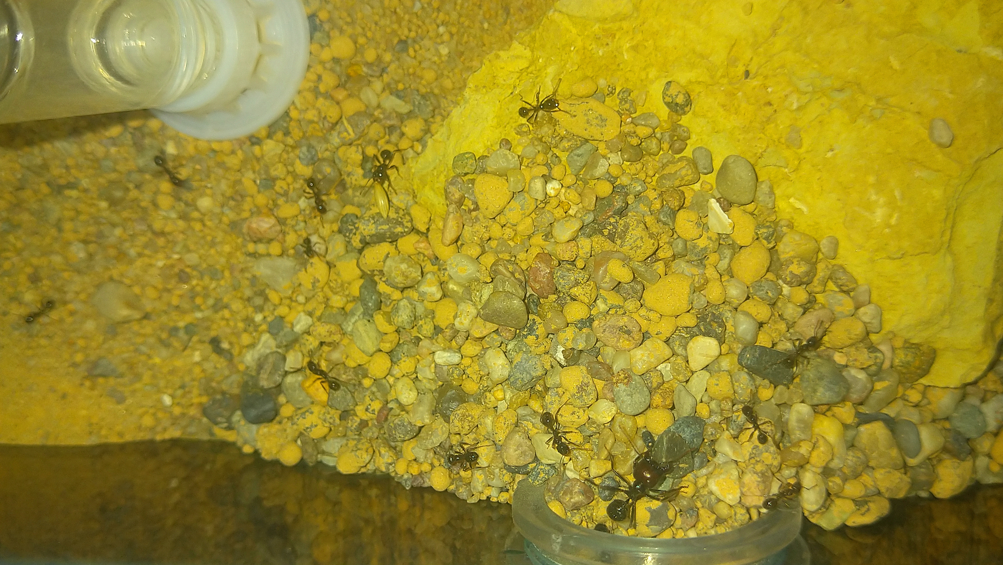 Ich konnte richtig beobachten, wie mehre Arbeiterinnen das Gestrüpp untersucht haben und dann hektisch zurück ins Nest gerannt sind.