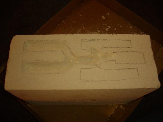 Danach die Kammer auf einem StĂŒck Y tong aufgezeichnet und ausgemeiselt.
