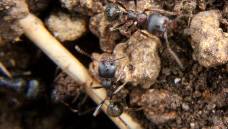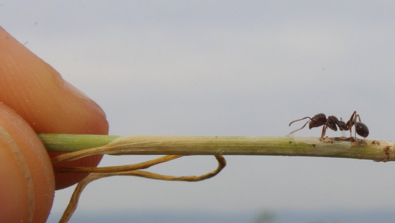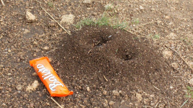 Generell: auf einer Fläche von ca. 150 mal 300 Meter habe ich nach ca. 160 Nestbauten bzw. Auswürfen aufgehört zu zählen - und das nur beim lockeren Durchgehen und Schauen auf den paar Trampelpfaden, was sich daneben im Gras und zwischen den Steinen so tut, kann ich nicht mal sagen. Sie scheinen die ganze Anhöhe im großen Maßstab zu besiedeln, egal wo ich rum gestapft bin dort - überall lässt sich recht flott Eines entdecken.