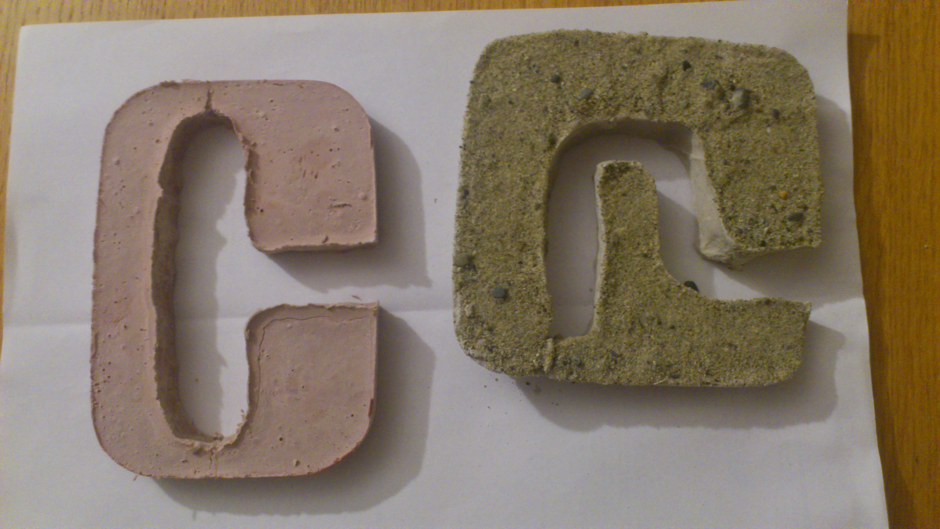 -Nach dem Trocknen wurde der Gips rausgelöst (da ich nicht genug lange gewartet habe, sind mir beide Gipsformen an der schwächsten Stelle gebrochen :P)