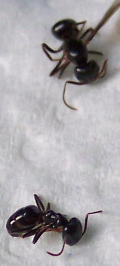 Die größe der Arbeiterinnen ist ca. 6-8mm (geschätzt, nicht gemessen, es gibt hier kein Kästchenpapier, geschweige denn ein Lineal...)