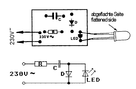 NICHT machen !!!! Solche Basteleien sind insbesondere fĂŒr Laien lebensgefĂ€hrlich. An der LED liegt volle Netzspannung !!!!