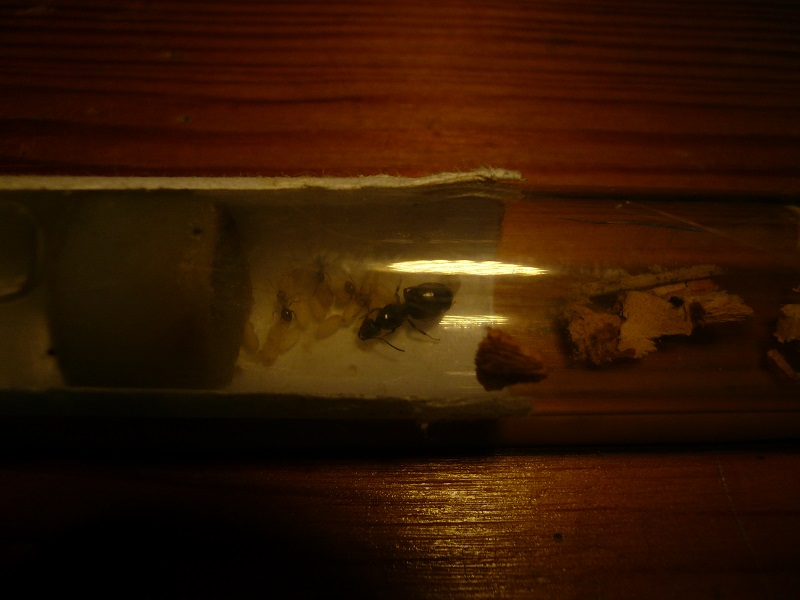 Durch sehr blöde Anfängerfehler (Nest zu weit weg von Arena und damit Futter, Haltung schon mit nur 2 Arbeiterinnen schon im Holznest,...) sind mir beide Arbeiterinnen gestorben