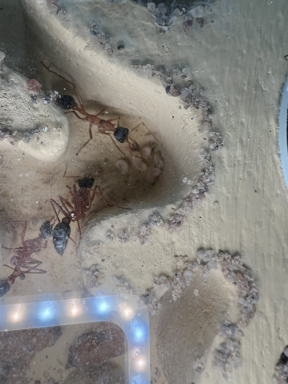 Königin. Eine Verwertung konnte ich jedoch noch nicht direkt feststellen. Auch wird weiterhin Honigwasser frisch angeboten. Jedoch ist die AuĂenaktivitĂ€t eigentlich nicht mehr wirklich ersichtlich. Ab und zu konnte ich eine Arbeiterin in der Arena sehen, diese sah mich dann aber natĂŒrlich ebenfalls und flĂŒchtete wieder in das Nest