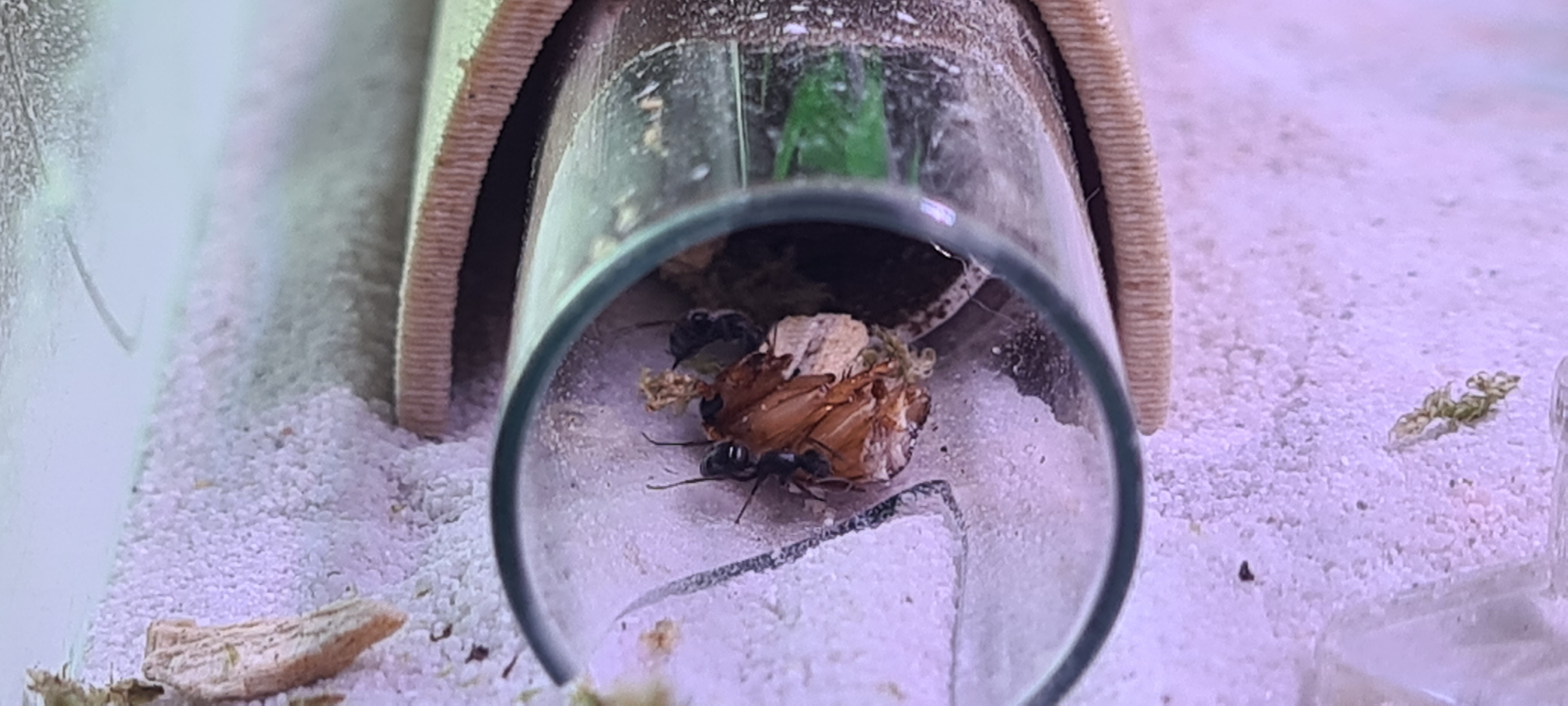 Ich habe nun 6 Arbeiterinnen, 4 Puppen im Endstadium und noch glaub 1 junge Puppe und einige Eier.