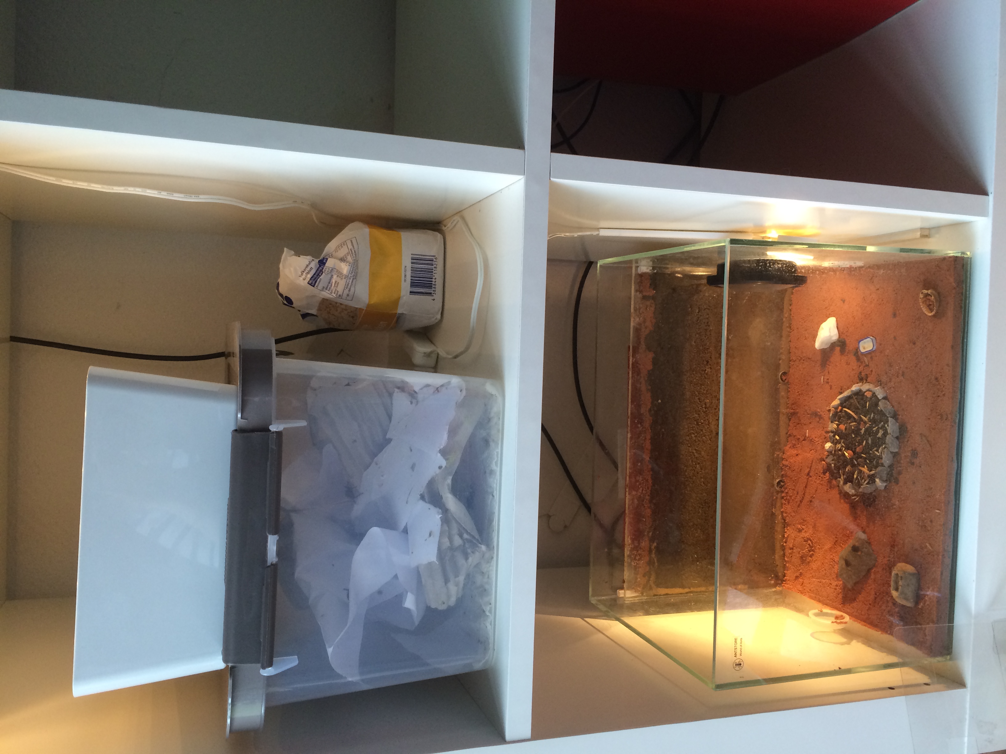 Naja, nach zwei Umzügen und etwas Schimmelbildung ist dann irgendwann endlich Ruhe eingekehrt und ich muss sagen die kleinen sind mir immer noch am liebesten. Aber wie das so ist mit dem Ameisenfieber, blieb es nicht lang bei einer Art und so sind Mitte des Jahres meine Traumameisen bei mir eingezogen. Eine Kolonie Myrmica rubra (eine
