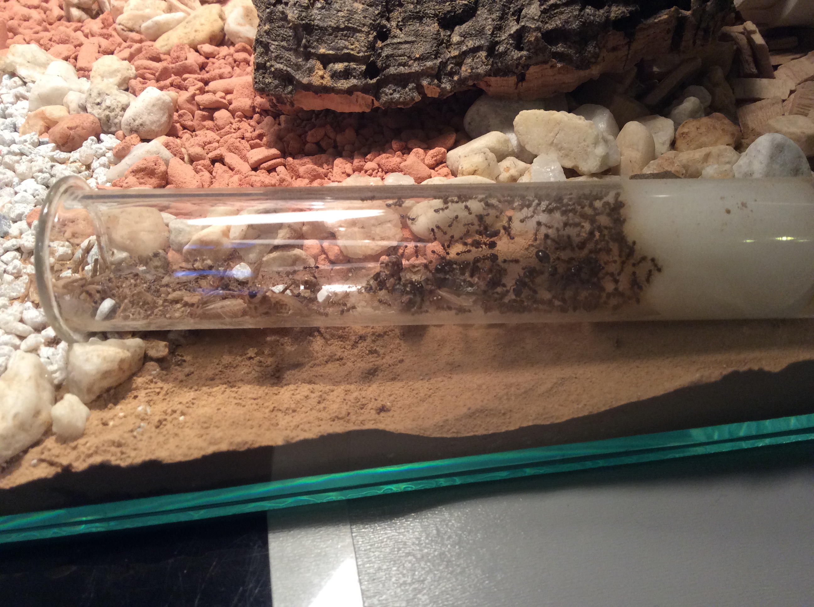 Ich habe meinen Ants fast zwei Wochen kein Zuckerwasser mehr gegeben und ca. 1/3 der ganzen Kolonie waren am Zuckertropfen.