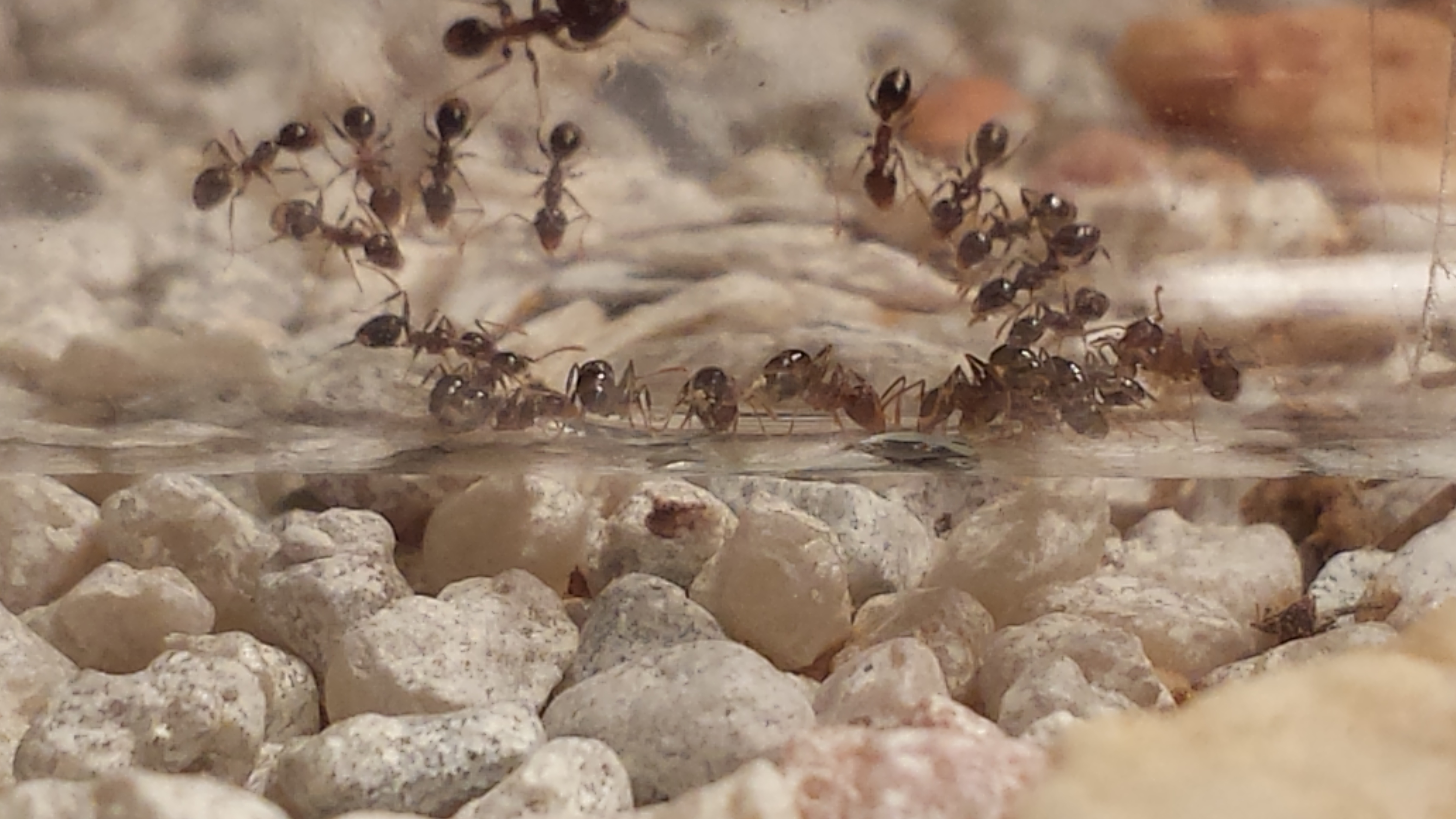 da es einfach am praktischsten ist. (Meines Erachtens ist die Art Pheidole Megacephala tollpatschik und übermütig) Sie ertrinken selbst in kleinsten Wassertropfen.