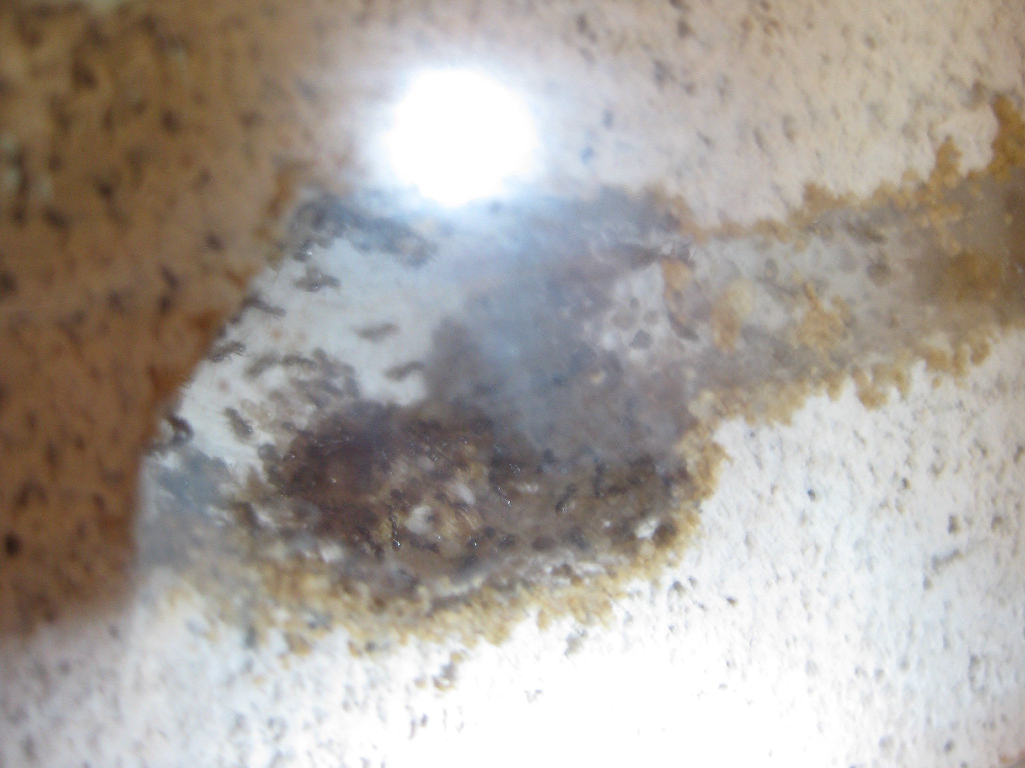 Hier sieht man deutlich das es nicht mehr lange gehen wird also ich rechne spätestens mit morgen mich den ersten geschlüpften Arbeiterinnen. Ich gab ihnen dieses Wochenende ein Stück Schinken hinein echt nur eine kleine Messerspitze! Etwa 15 min später war diese besetzt von Arbeiterinnen und Soldaten! Fand ich echt übel! Dass sie so auf Wurst losgehen hätte ich nie gedacht!