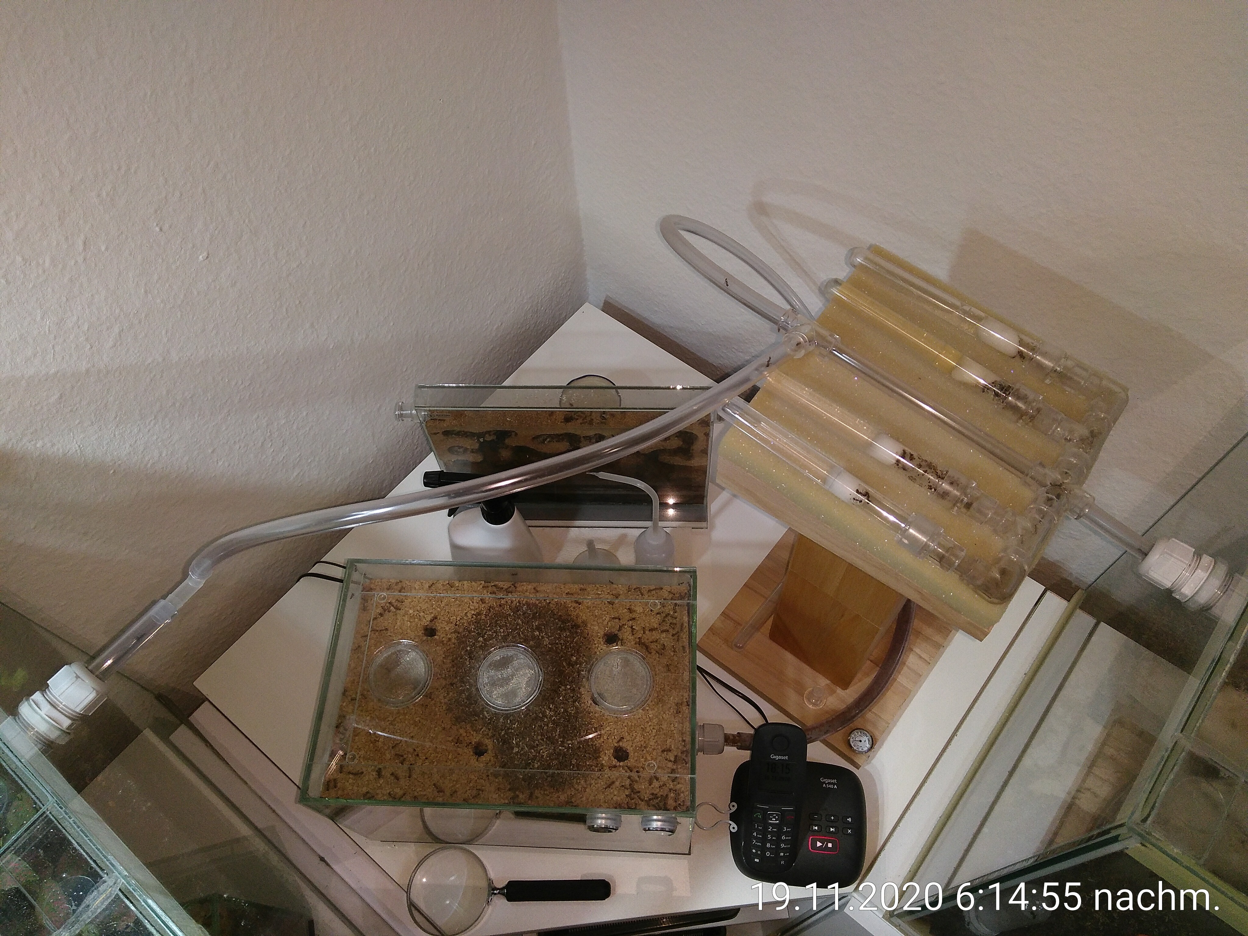 meine Ameisen werden ordentlich. Das hätte ich ihnen gar nicht zugetraut. So sah ihr großes Nest in den letzten Monaten aus.