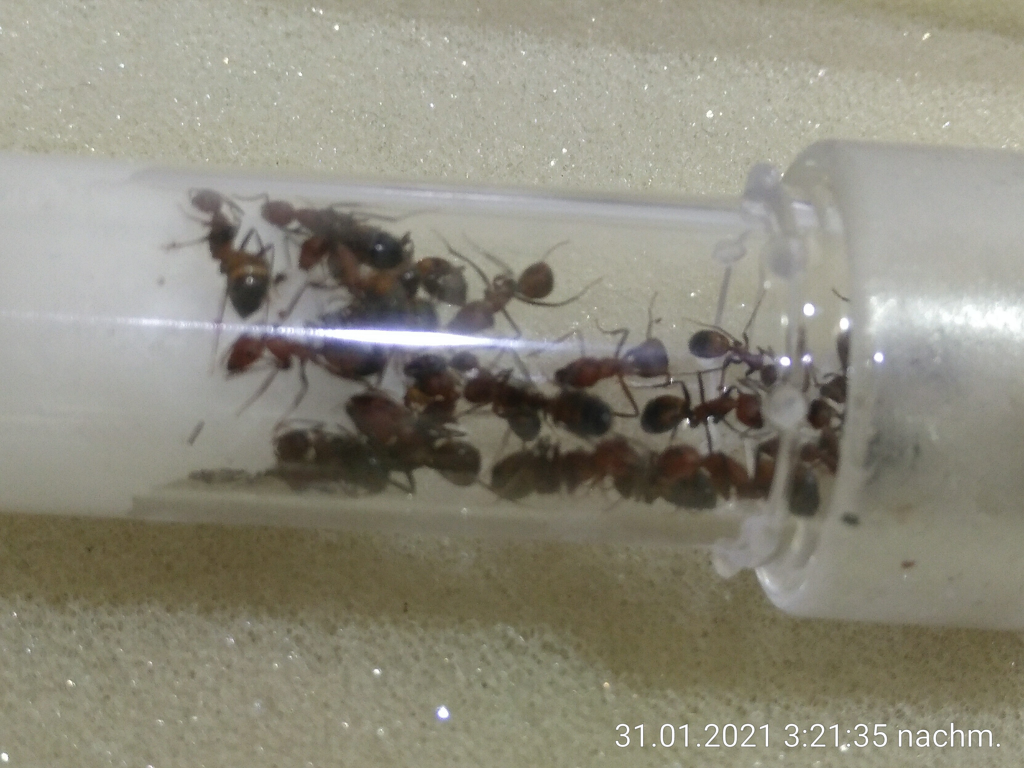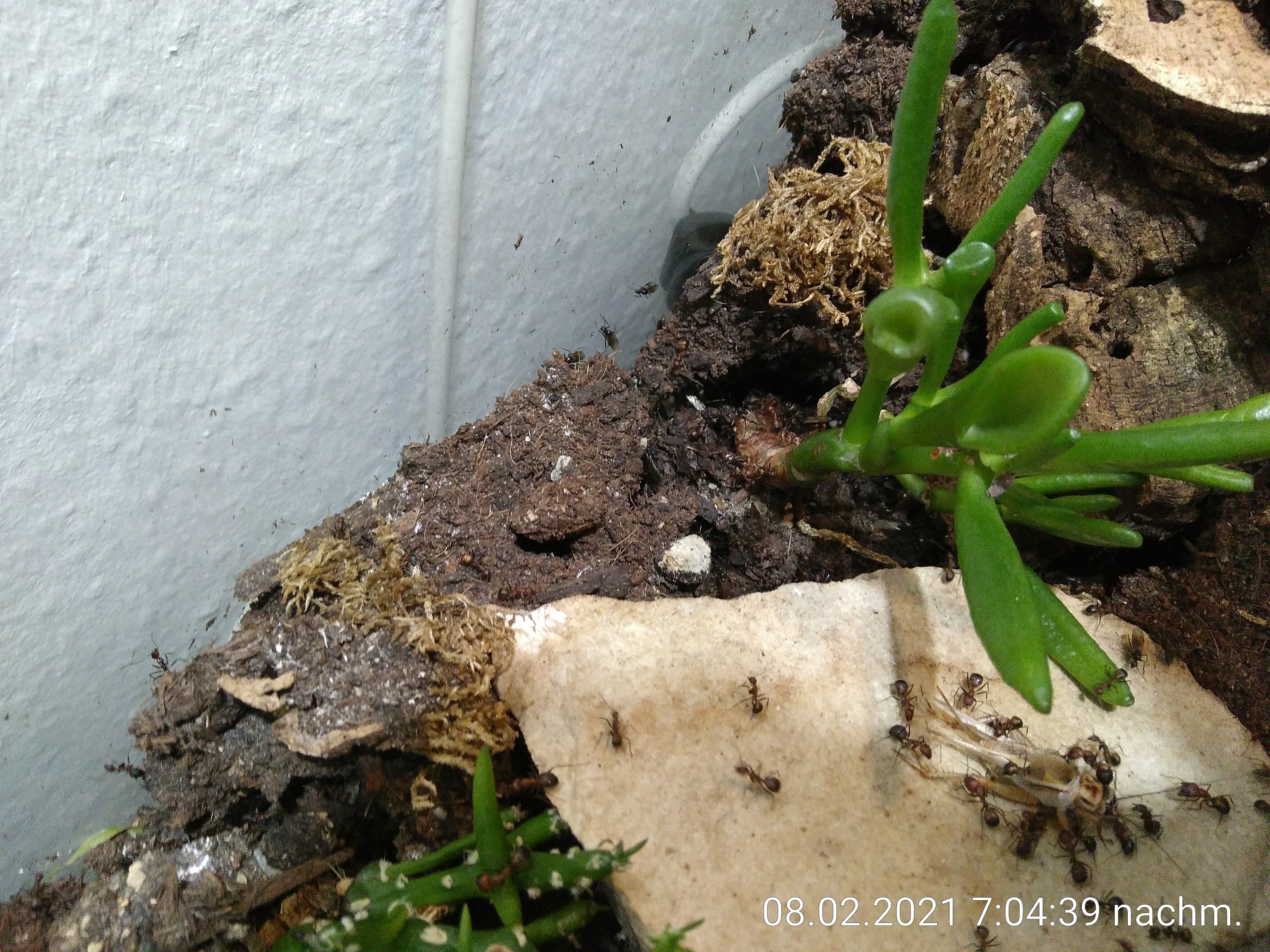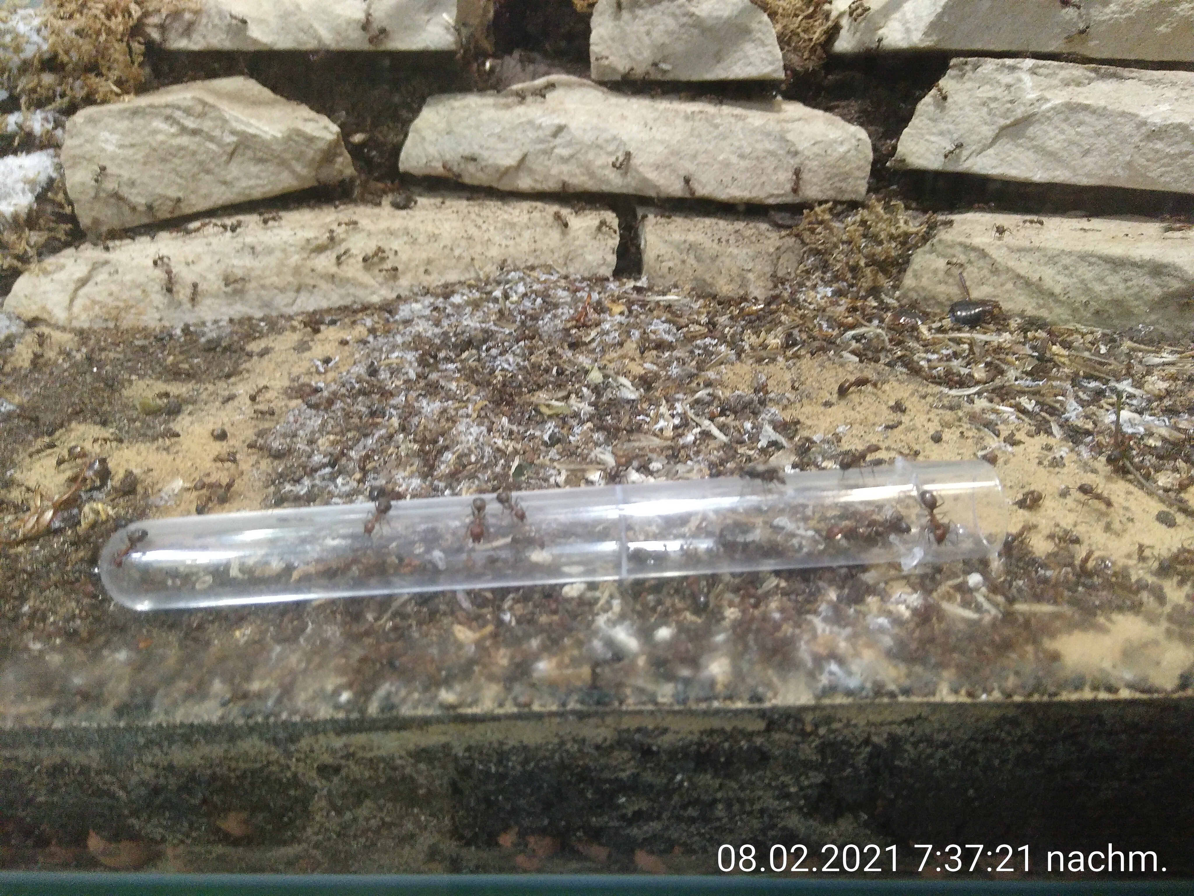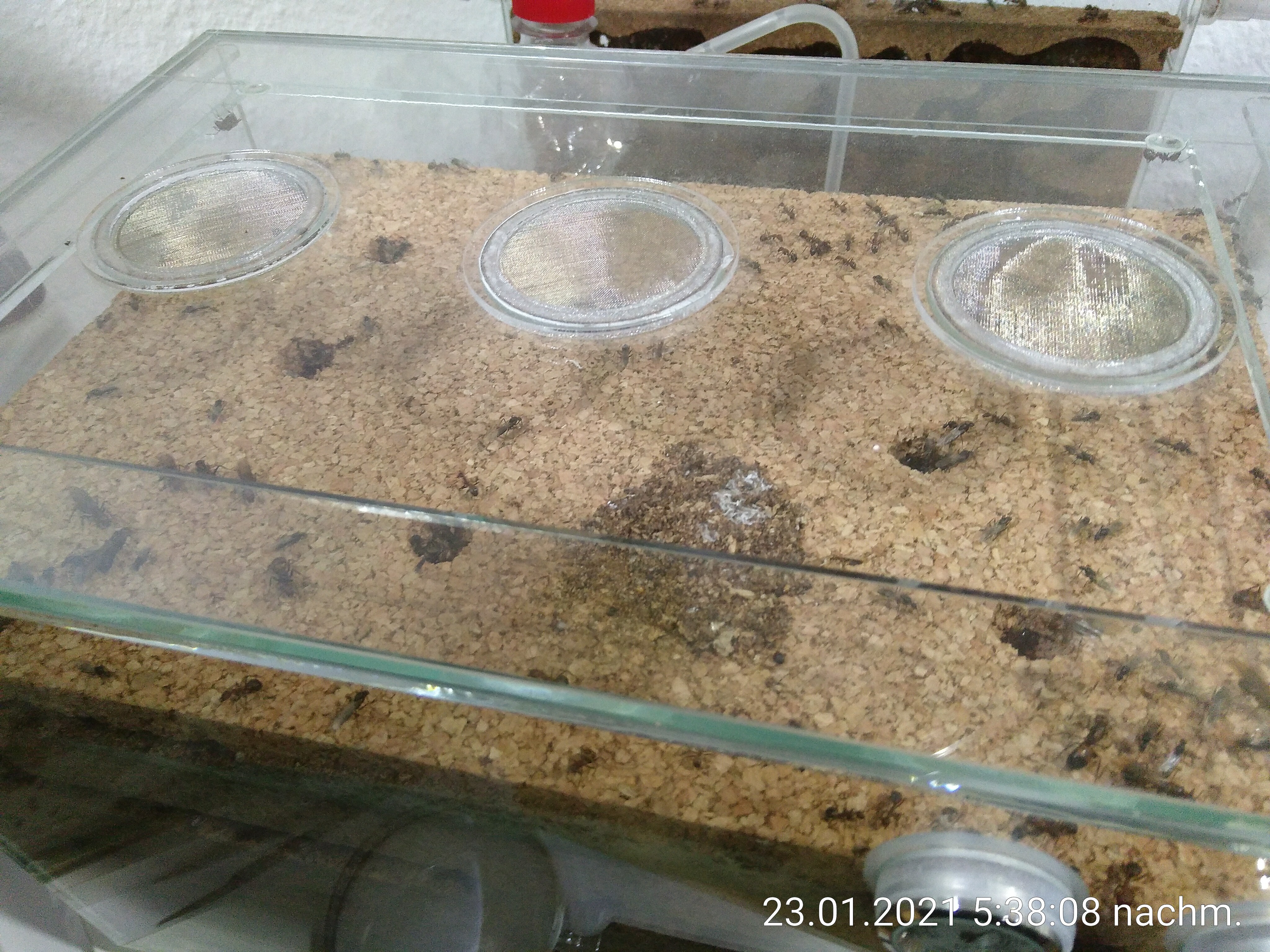 Selber habe ich sie trockener gehalten, nur ein wenig Feuchtigkeit im Nest, Arena vollkommen trocken.