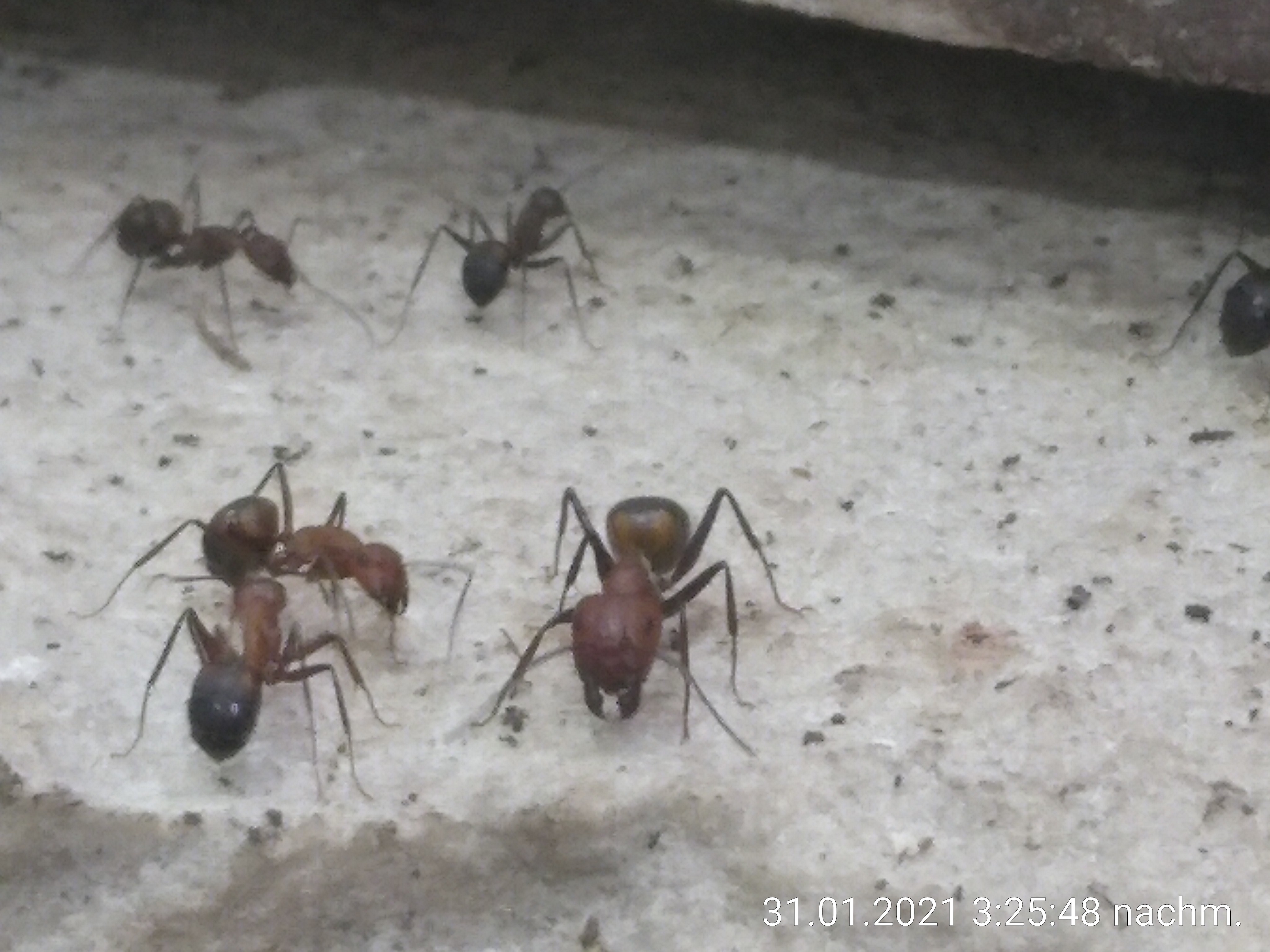 Ihr Appetit ist seit einigen Wochen stark eingeschränkt. Ausnahme ist Invertzucker. Ich kann im alten Korknest, das einzige mit echtem Einblick, zur Zeit auch so gut wie keineBrut finden. Die Königin macht wohl eine kleine Pause, hoffe ich. Nicht, dass es doch Auseinandersetzungen mit den Prinzessinnen gab... Der Rest der Kolonie scheint für mich unverändert.