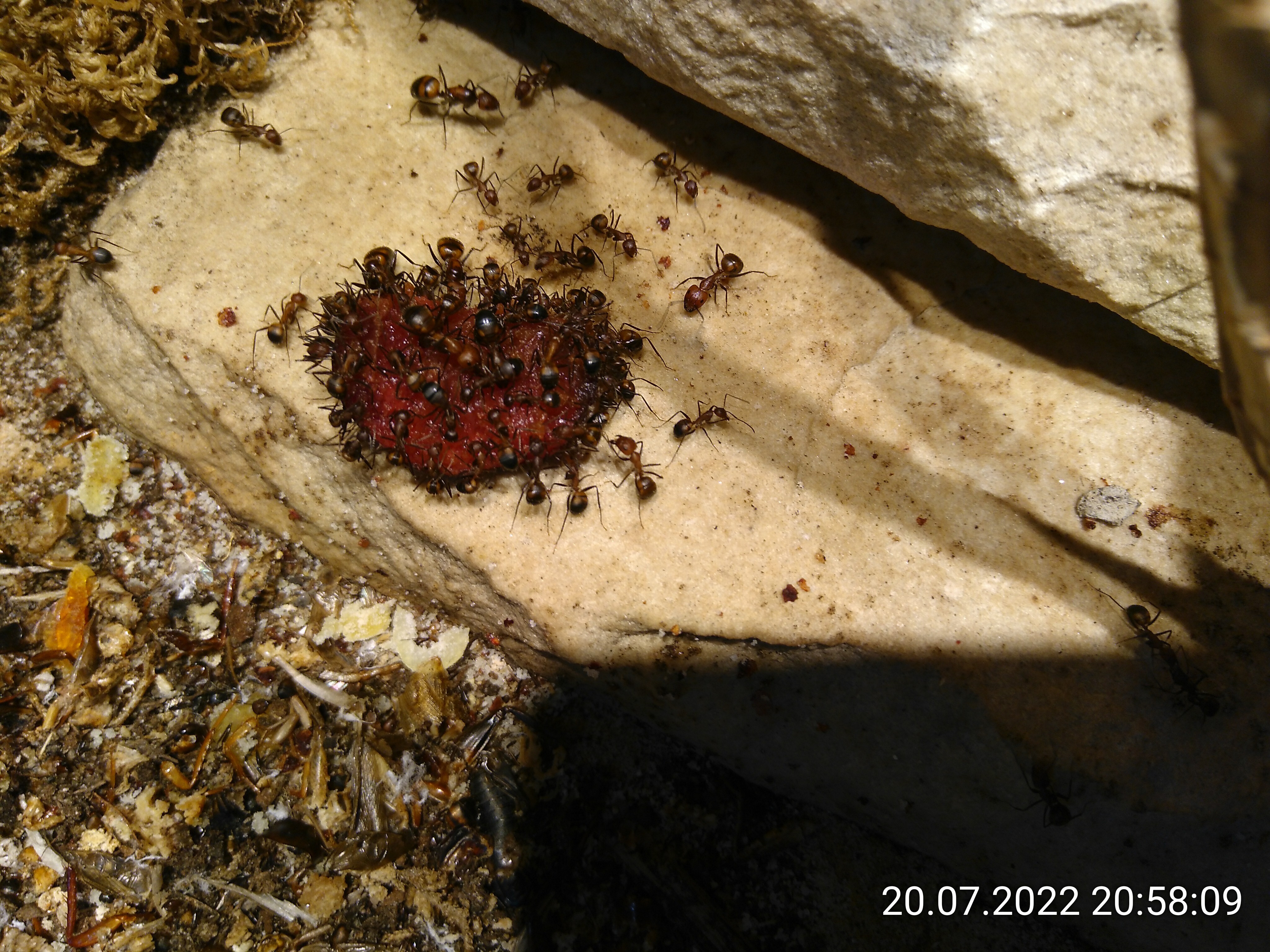 es wird wieder wärmer und sie bringen wiederBrut nach vorne. Zufall? Aber ich sehe, dass keine großen Puppen mehr dabei sind. Und die Kammer oben rechts nutzen sie heute zum ersten Mal.