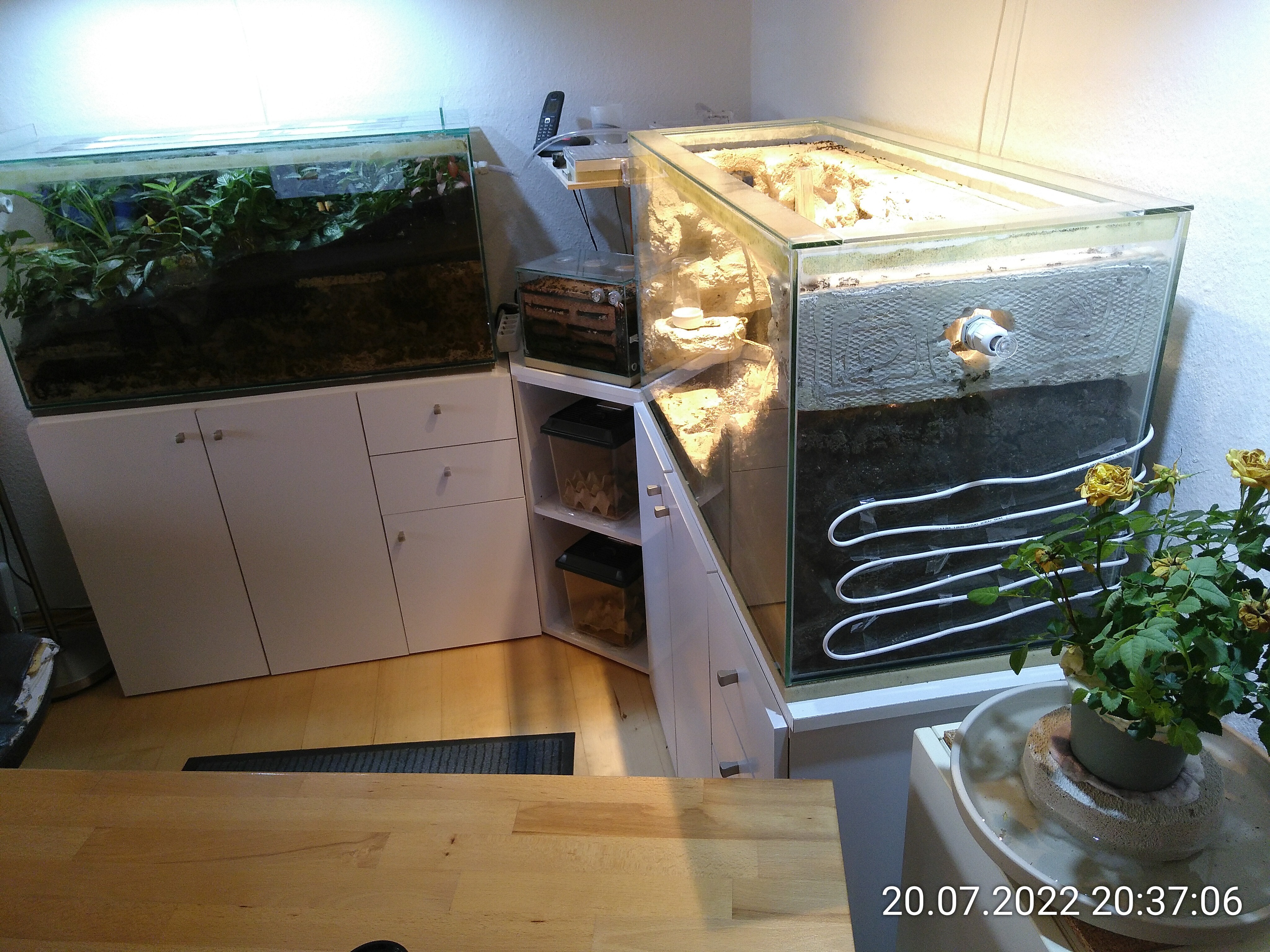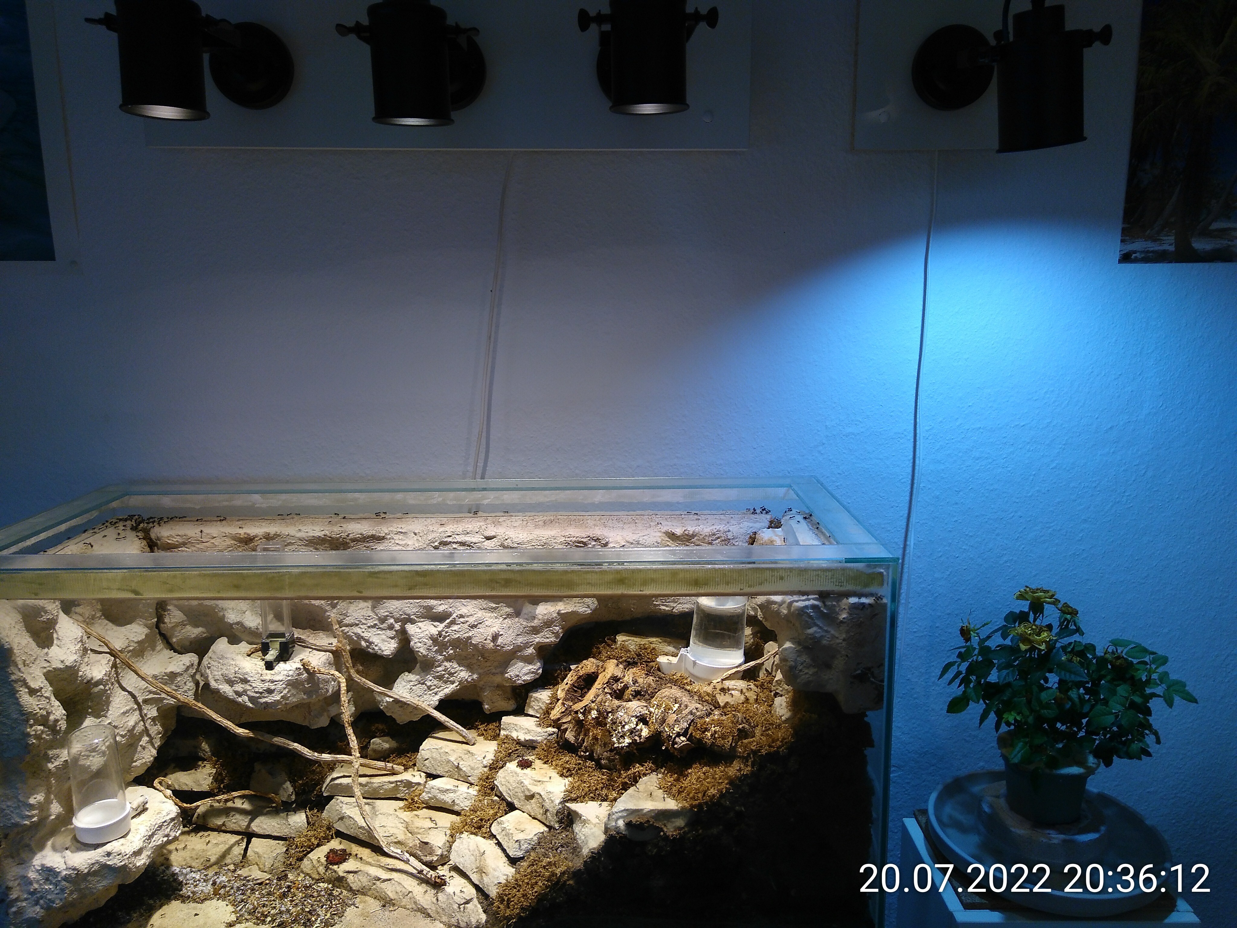 PS: Beim Füttern gerade im Dschungel habe ich eine Spinne aufgeschreckt, die ich seit mindestens gestern für tot gehalten habe. Sie hält jetzt definitiv den Rekord mit mindestens 3 Tagen im Dschungel. Wenn sie morgen bei Beleuchtung noch lebt, mache ich ein Foto.