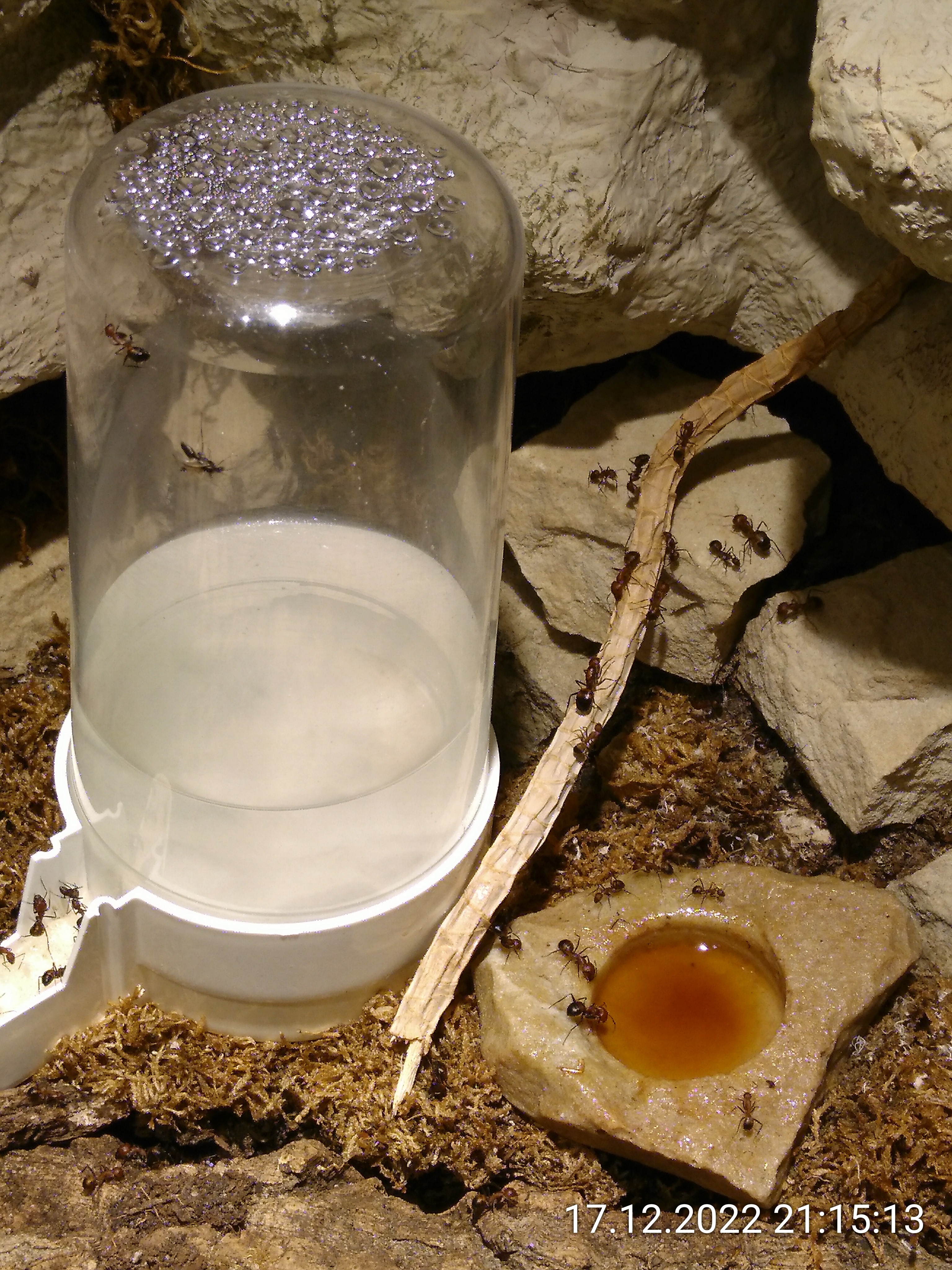Antwort: Nicht nur eine bzw. 2 Tränken, sondern auch ein Klippenspringer-Setup. Ich erklär's euch. Kurz nachdem ich etwas Leckeres in den Steinnapf gegeben habe, ist eine Ameise oben vom Wasserspender direkt in den Steinnapf gesprungen, zum Beckenrand und wieder raus. Hat mich direkt an Klippenspringer erinnert :) Als ob sie darauf gewartet hätte, dass ich endlich das Becken fülle.