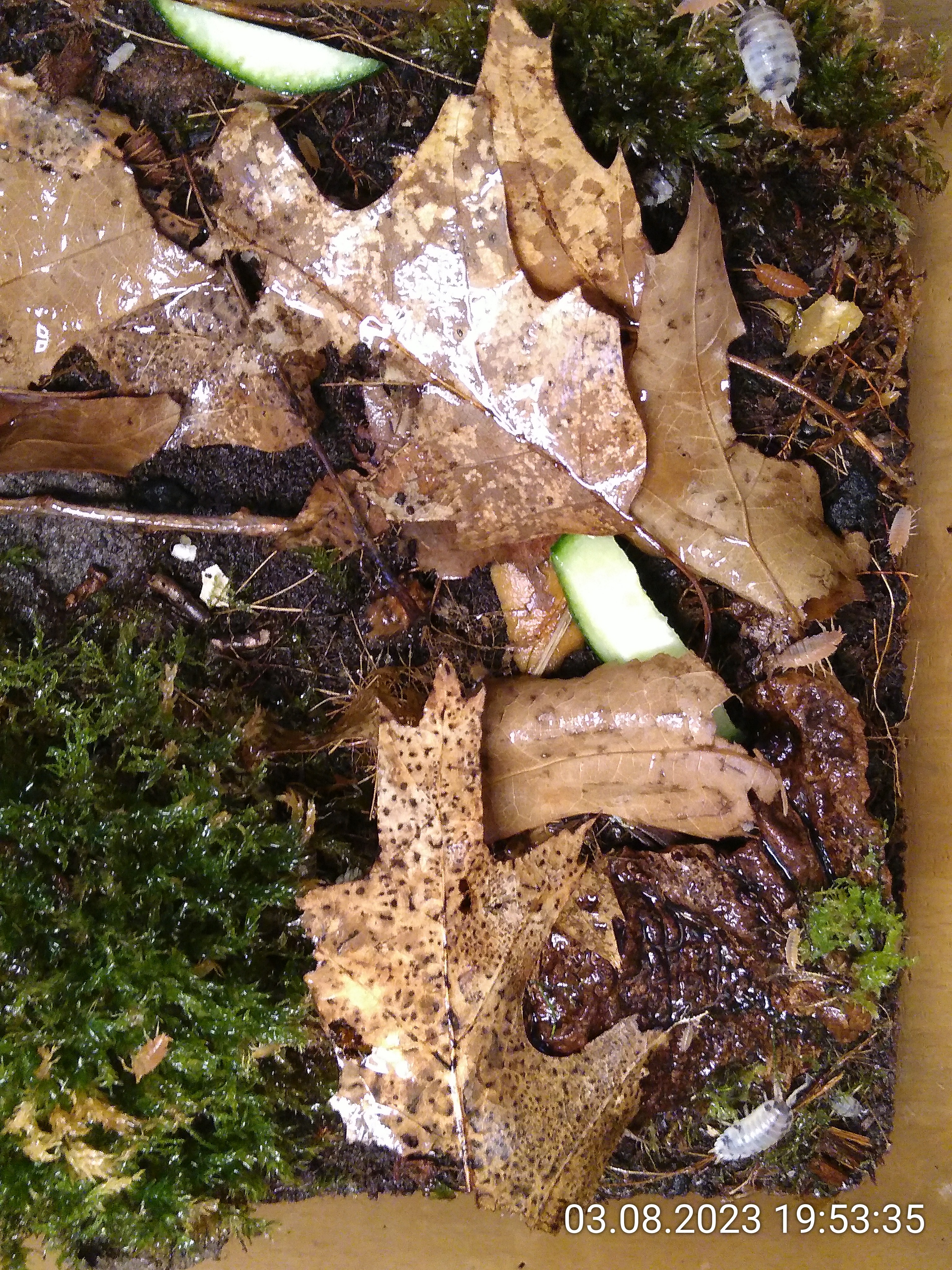 Und zum Schluss habe ich noch ein paar Bilder aus dem Asselarium für euch. Da wuselt es immer mehr, in diesem Fall direkt nach dem Befeuchten.