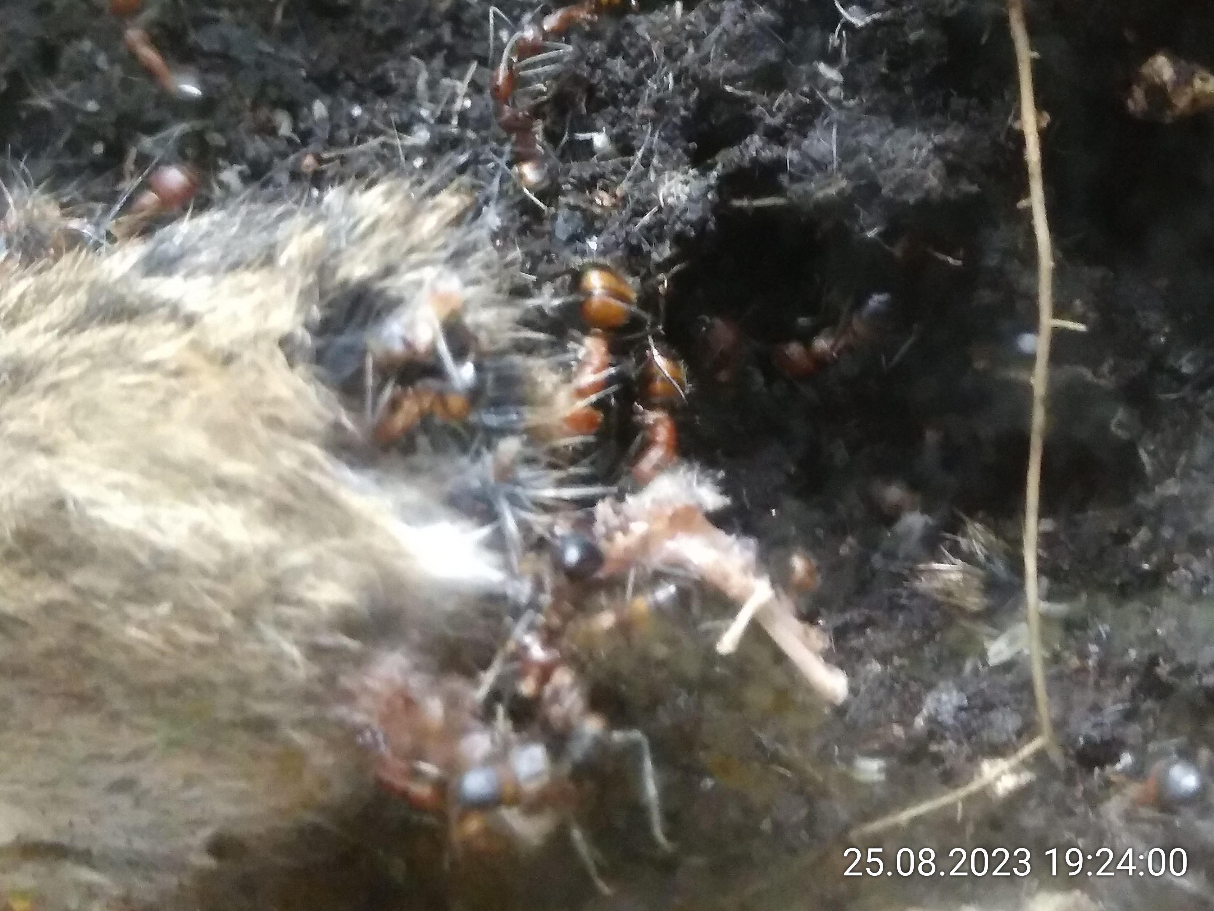 Ah ok ich kenn sonst nur die frei rumliegenden Mäuse meiner Katzen welche Sie mir ab und zu in der Wohnung verstecken - das ist so ein süss-ekliger Leichengeruch der sich dann bemerkbar macht. Aber kann natürlich gut sein, dass die Ameisen den Geruch bei der Verarbeitung unterdrücken.