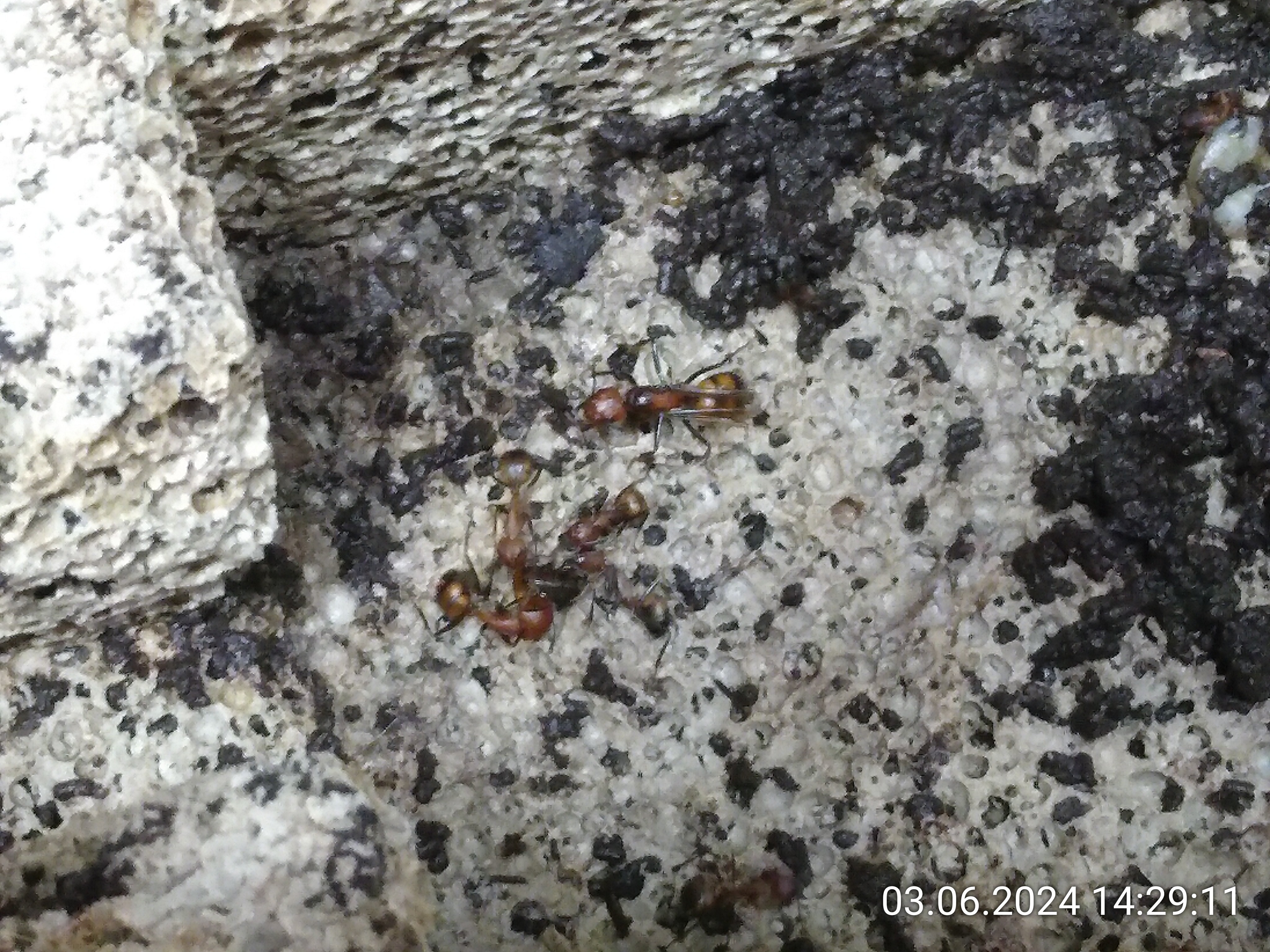Die Fotos vom Nestöffnen sind also immer erst ein paar Minuten später entstanden, ich habe leider auch nur zwei Hände. Wenn ich ein Teil hochgehoben habe, musste ich immer erstmal die Ameisen runterpinseln. In der Zwischenzeit haben die übrigen natürlich schon mit der Evakuierung begonnen.