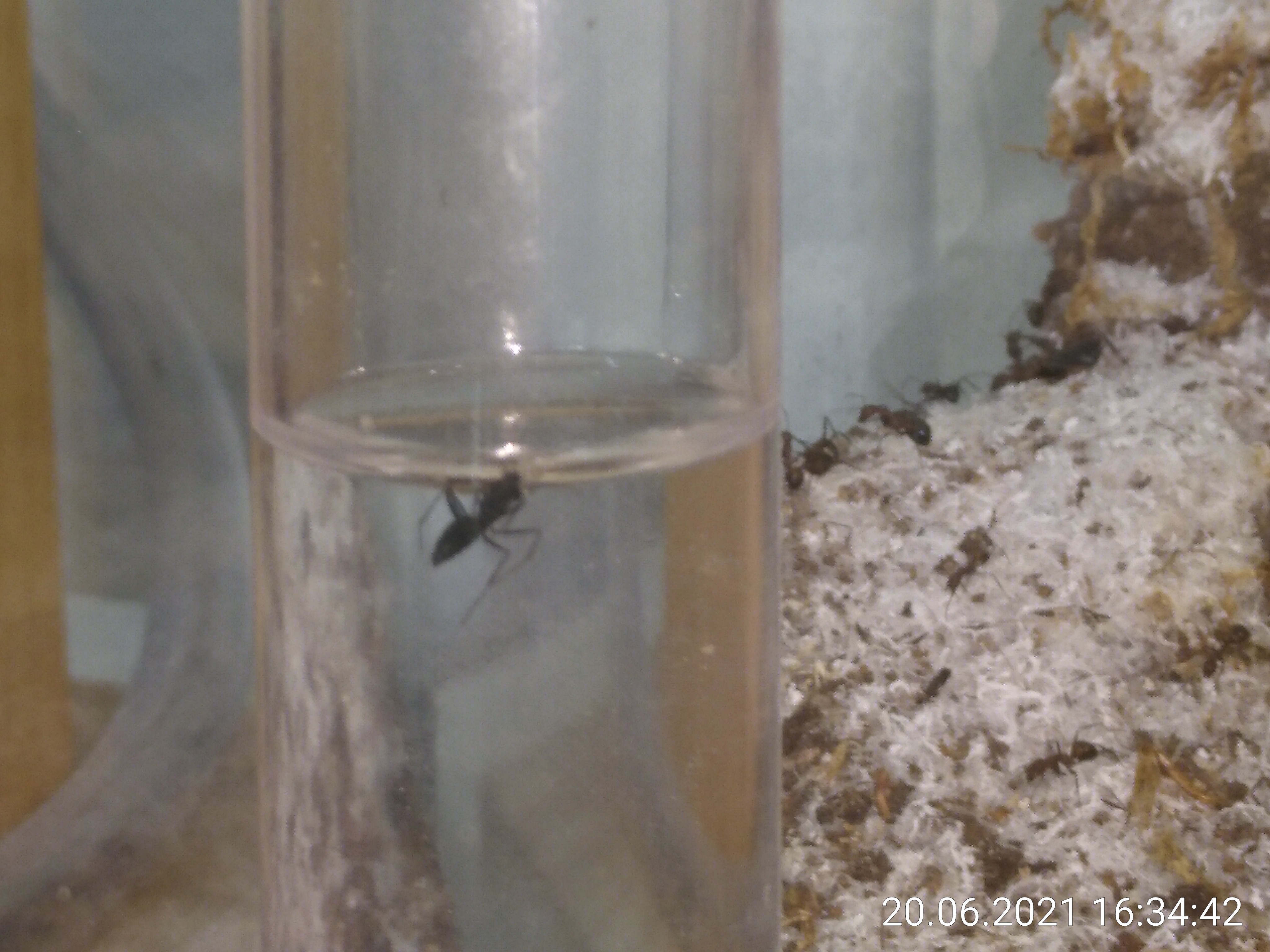 Eben habe ich zum ersten Mal auch eine Suizid-Ameise in meiner Wassertränke gefunden.