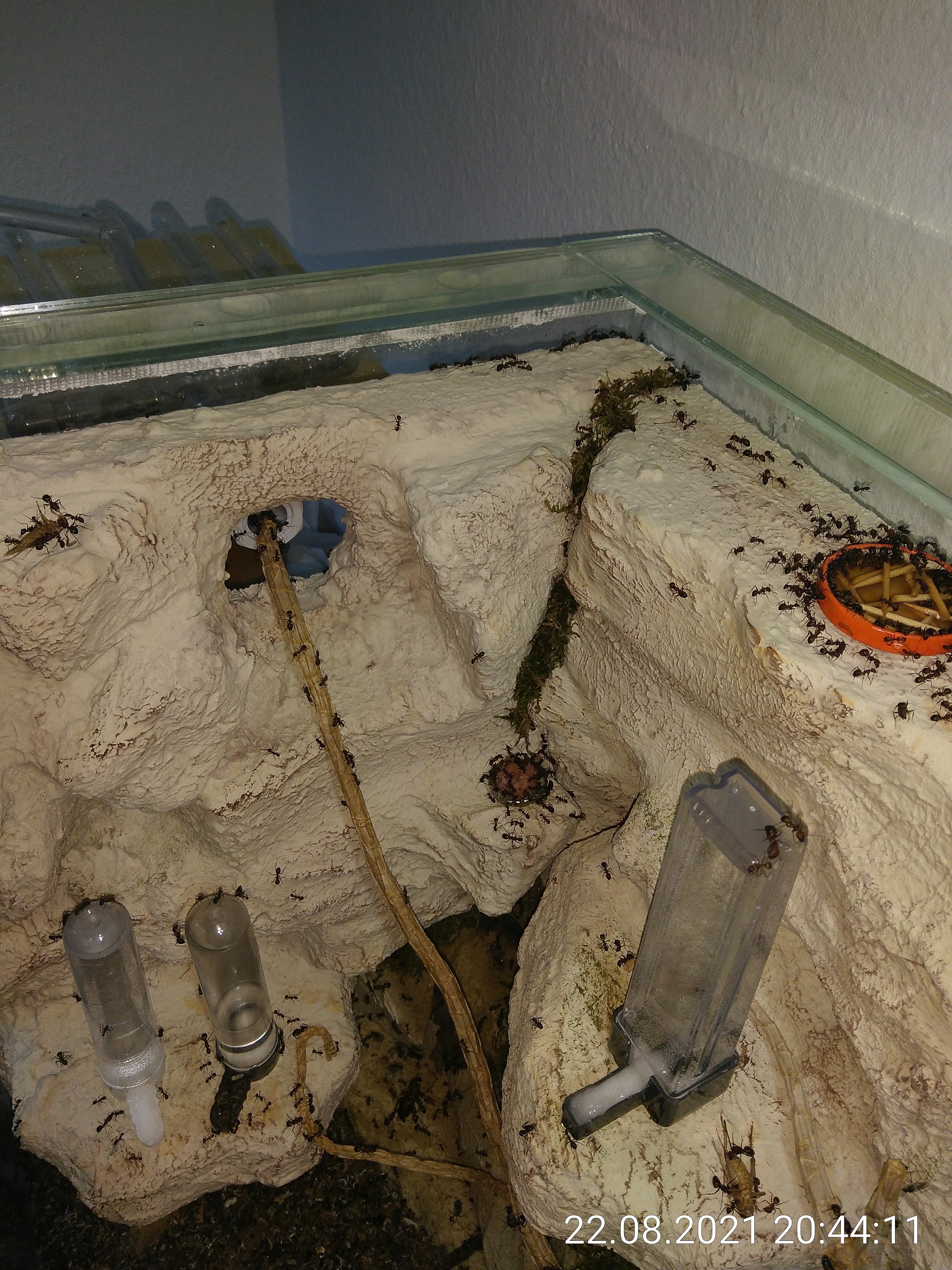Die Ameisen und ich sehen die Wände mittlerweile als echte Bereicherung für das Becken. Sie sind voll akzeptiert worden. Es gibt 2 Positionen, an denen ich Tränken aufstellen kann, einige neue Futterplätze und auf der oberen Ebene des Steinbruchs halten sich immer viele Ameisen auf. Diese Ebene kann ich total gut nutzen! Eigentlich hatte ich sie gar nicht so eingeplant. Cool! Aber seht selbst...