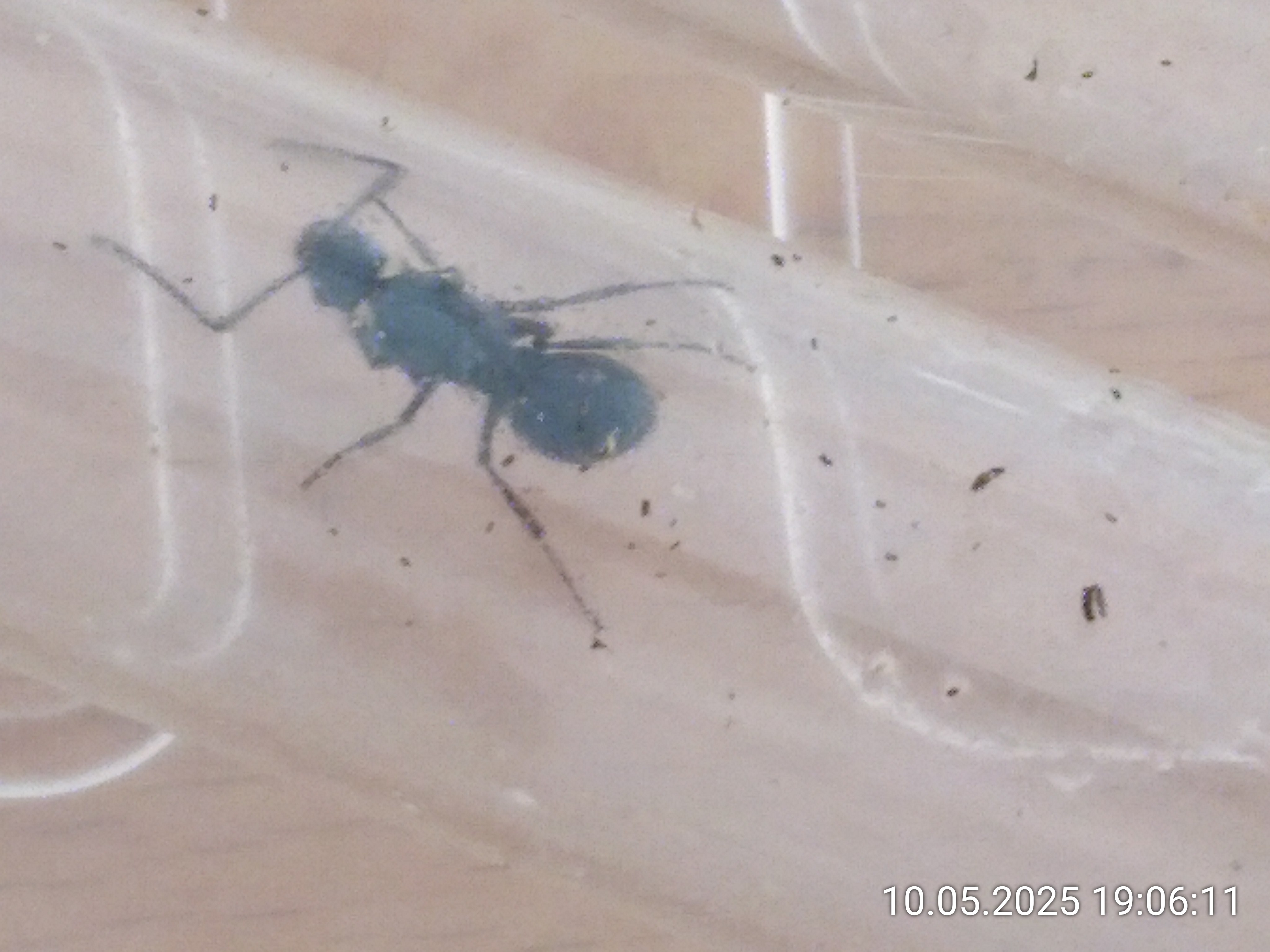 DieKönigin ist wirklich wunderschön. Irgendwann fange ich das auch mit der Kamera ein. Sie ist deutlich größer als 1 cm, hat einen blauen Gaster und einen blau-grünlichen Kopf. Dazwischen gibt es ein schönes Farbspiel. Und mir gefallen auch Ihre "Stacheln" auf dem massiven Mittelteil sehr gut (spiny ants).