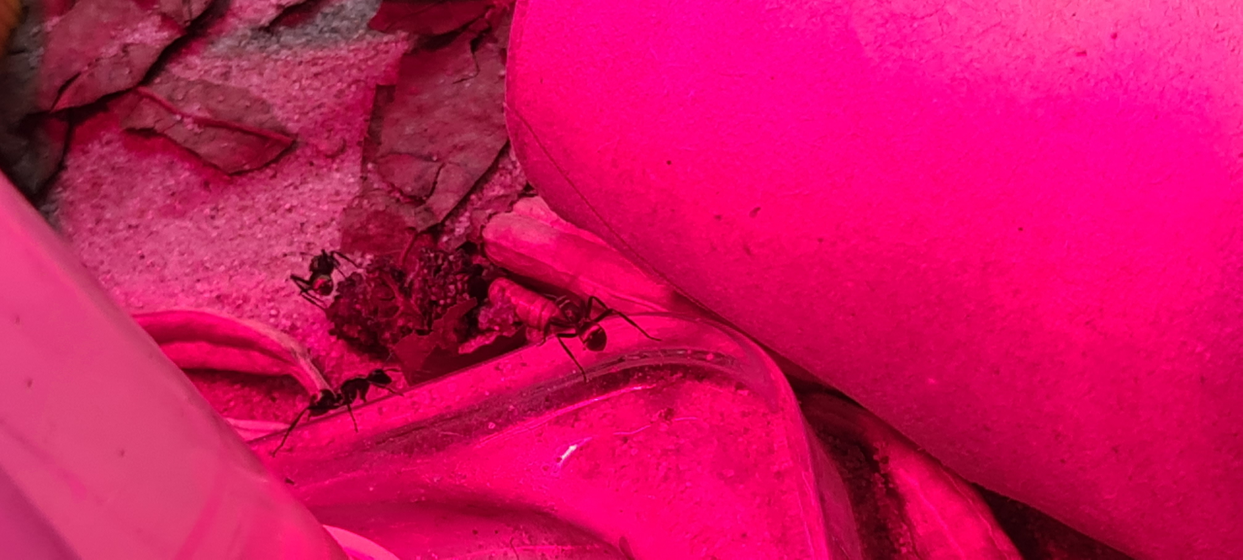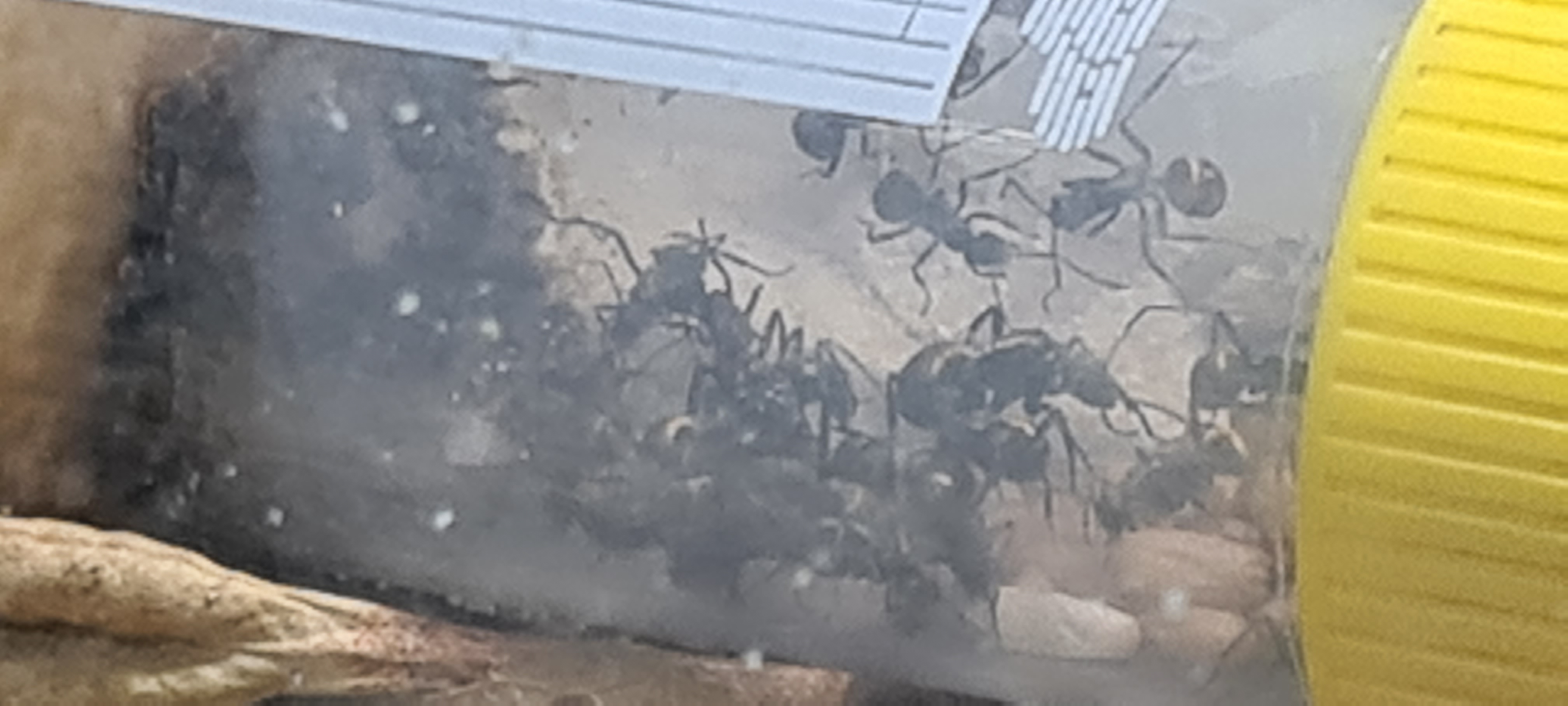 Erst mal ist irgendwie eine Minispinne ins Terrarium geraten und hat eine Ameise gekillt bis ich es merkte, leider.