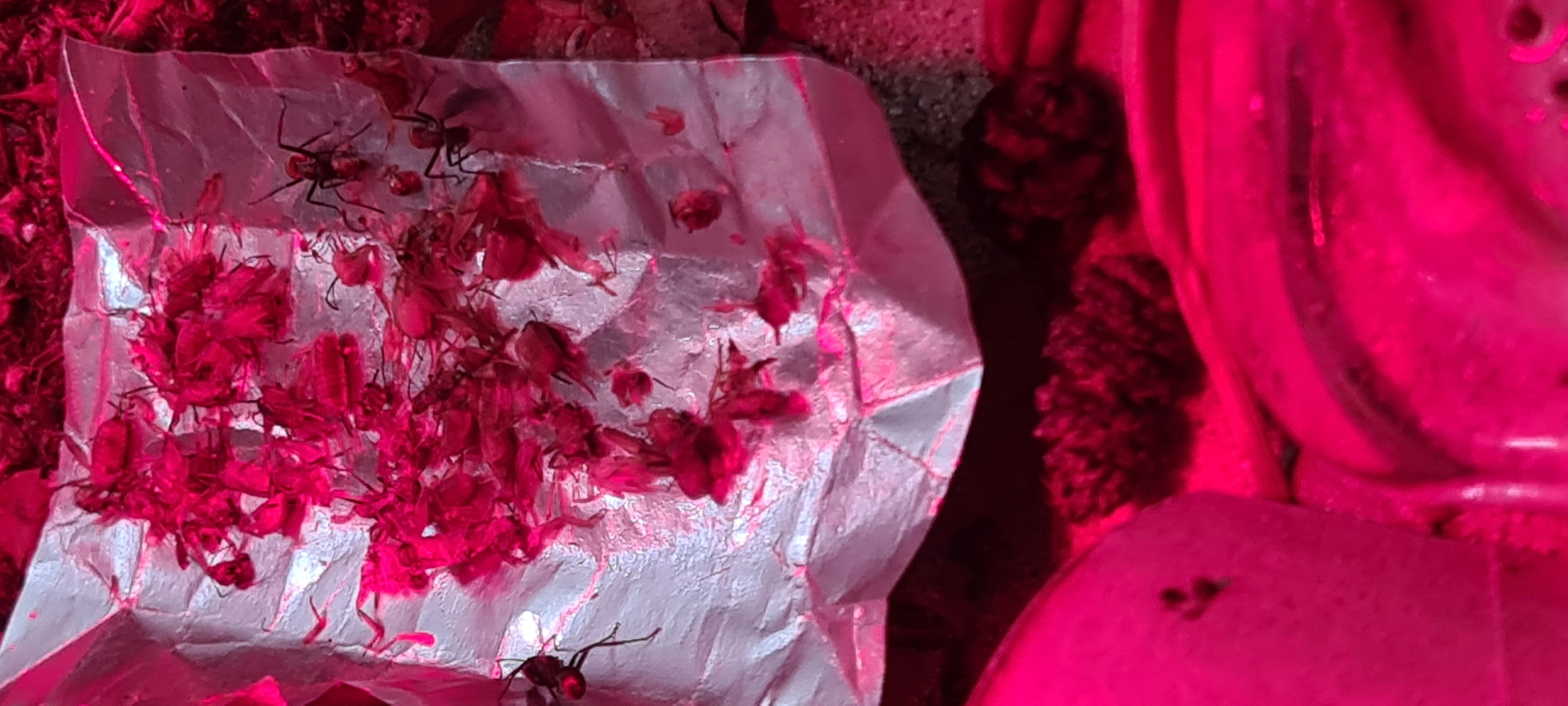 Es wird nur noch das grosse Doppelragenzglas bewohnt, die Kolonie sollte jetzt ca 30 bis 40 Tiere haben ( habe schon lange nicht mehr rein geschaut ins Reagenzglas ).