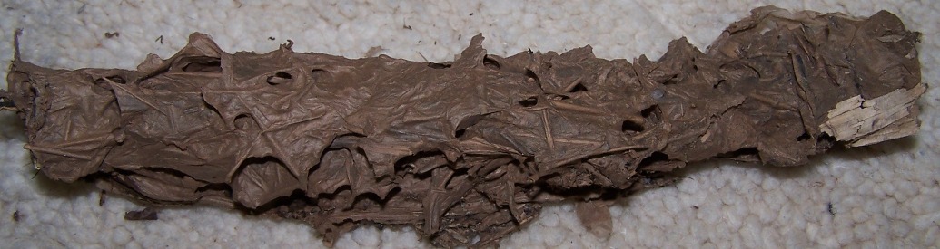 Ich stell noch mal Bilder rein, aber auf dem Bild, dass beide Becken zeigt, liegt in der Mitte des linken Beckens so ein Klumpen. Das ist ein Teil davon. Es waren noch 3 hohle bambusröhren dabei, welche aber am 2 Tag verlassen waren. Davon kommen auch Fotos. Man kann sehr schon erkennen wie die Ameisen diese im Inneren verwebt haben.