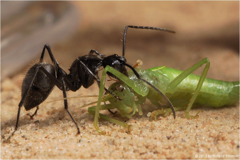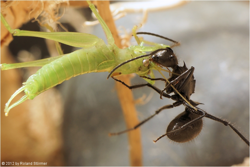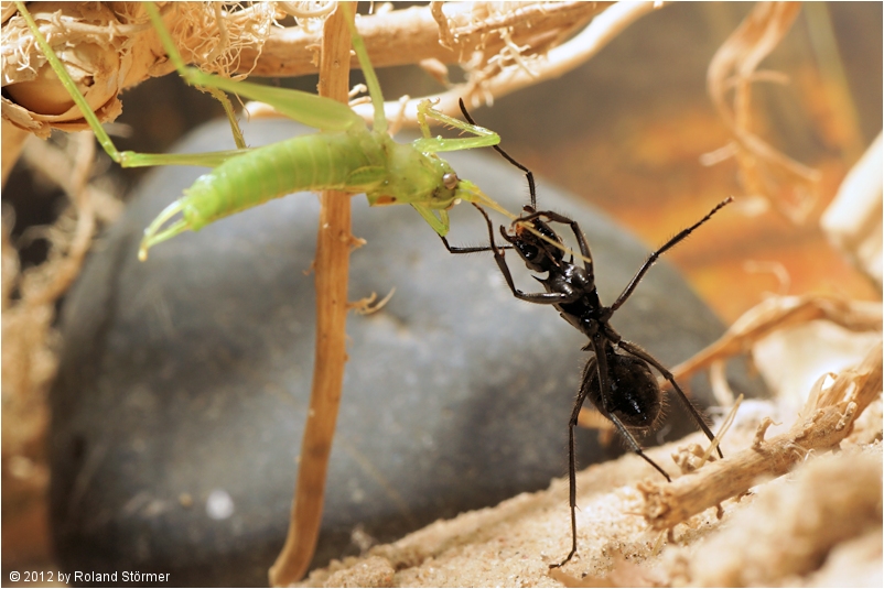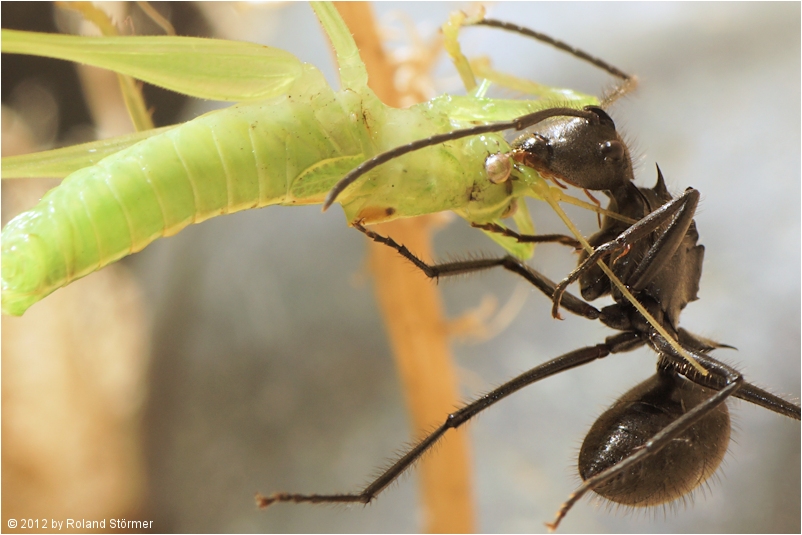 Polyrhachis spec. aus Indonesien bei der Jagd.