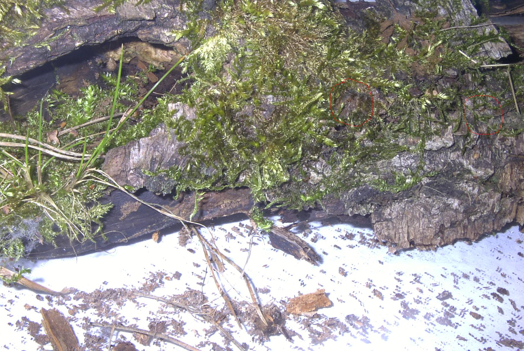 Heute habe ich mal ein StĂĽck von nem Heimchen von meinen Campos abgezwackt und einfach mal oben auf den Ast gelegt.