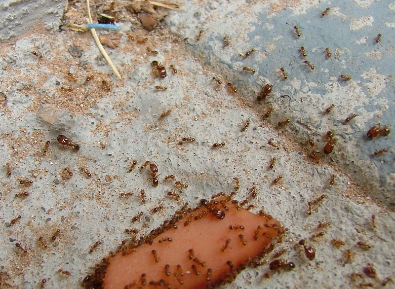 Vergangenen Sommer hatte ich "meine" Pheidole Kolonie aus den Augen verloren. Statt dessen befanden sich in deren Revier oftmals die angesprochenen Lasius-Arbeiterinnen, die dort am fouragieren waren.