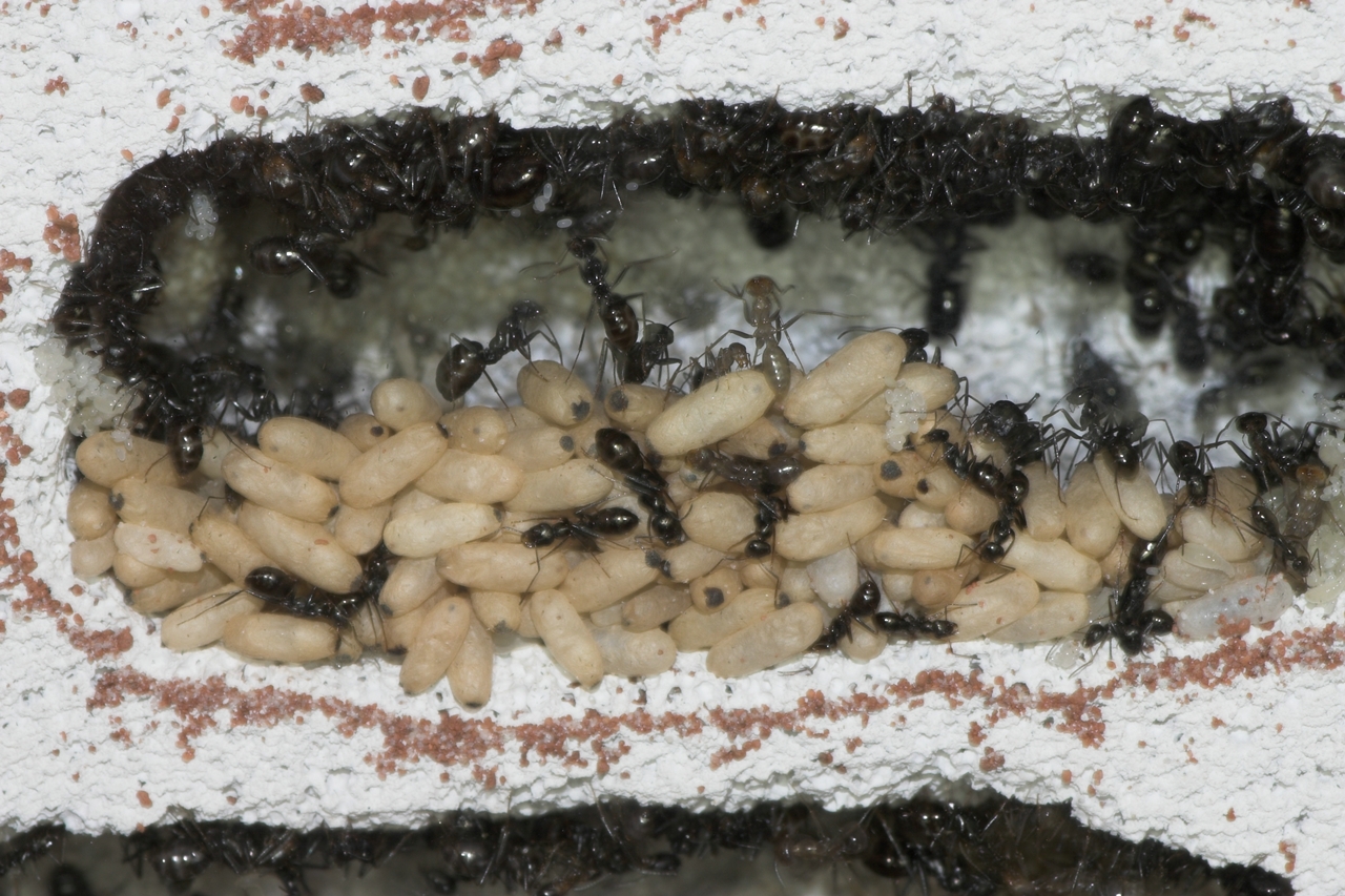 Königinnen waren draußen und liefen wie wild im großen Becken umher, bewacht von ca. 150 Ameisen die ebenfalls sehr aufgeregt wirkten. Was für ein Anblick sag ich euch. So ein misst das ich keine Video Kamera zu hause hatte!