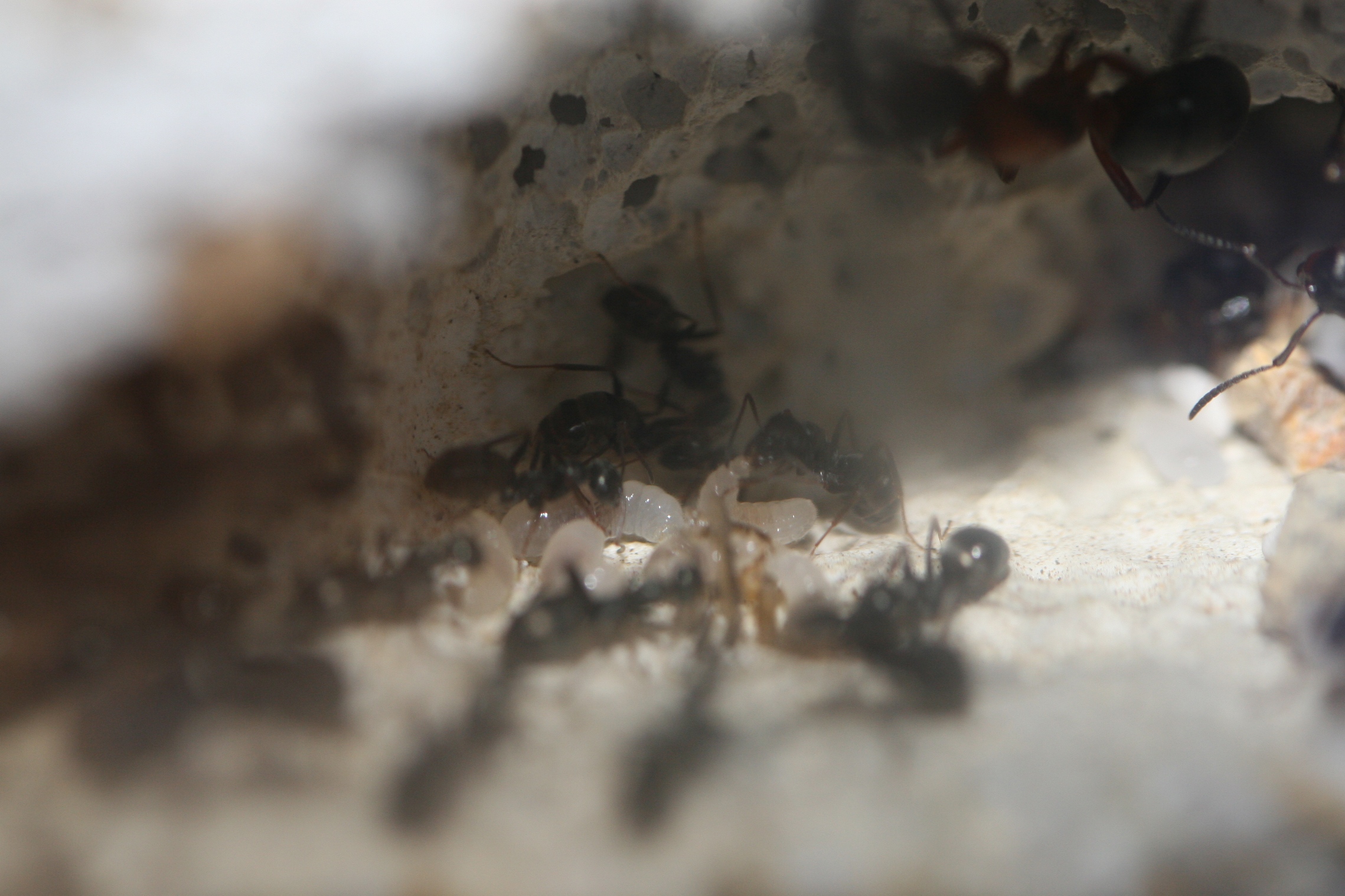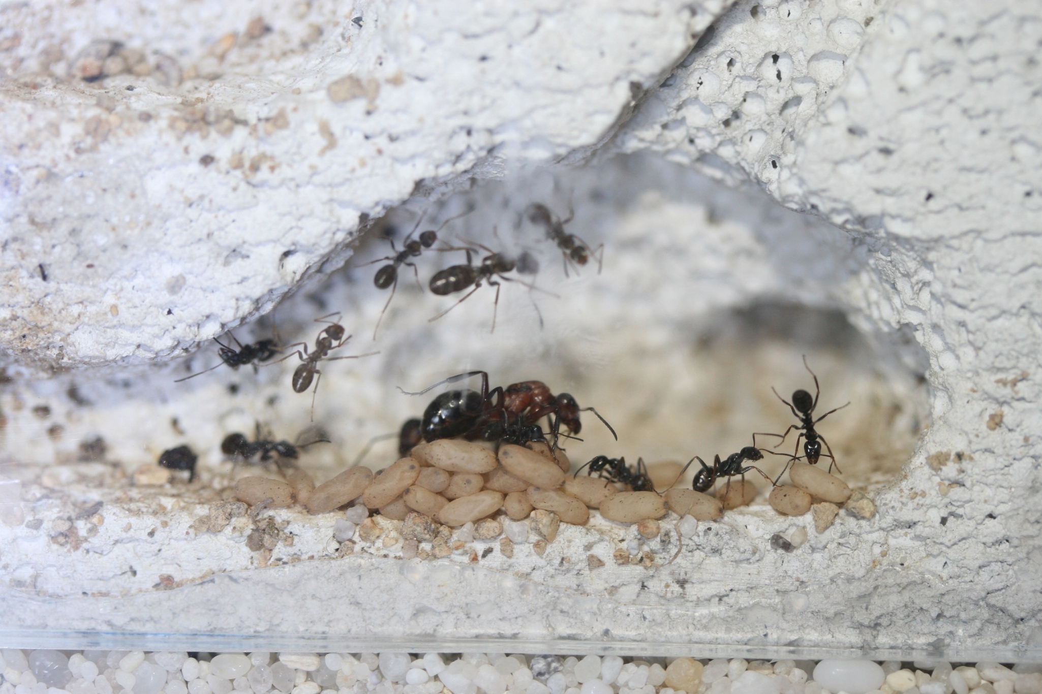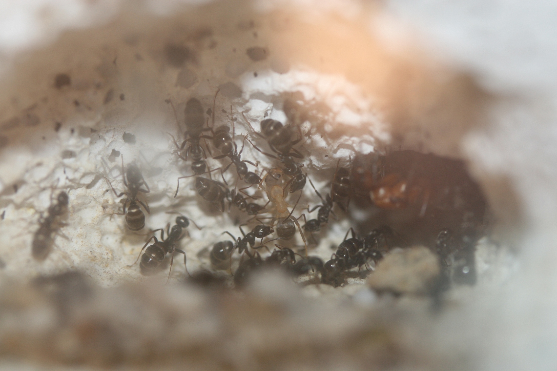 Außerdem hatte ich mich dann doch dazu entschlossen sie in einen kleineren Ytong umziehen zu lassen, da sie die leeren Geschlechtstierpuppen nicht mehr abtransportierten. Die waren mittlerweile durch den Schimmel mehr oder weniger zusammengewachsen.