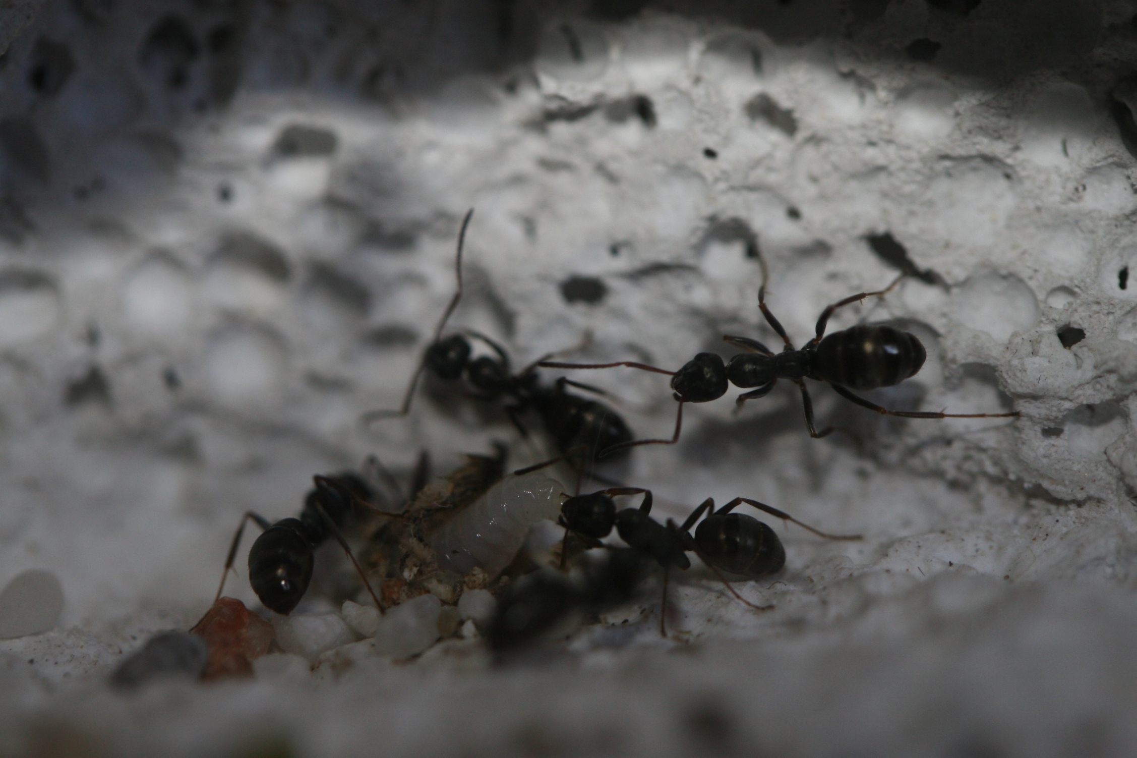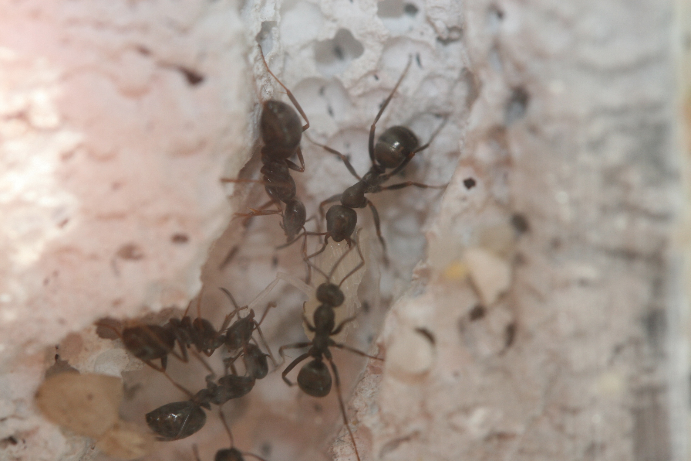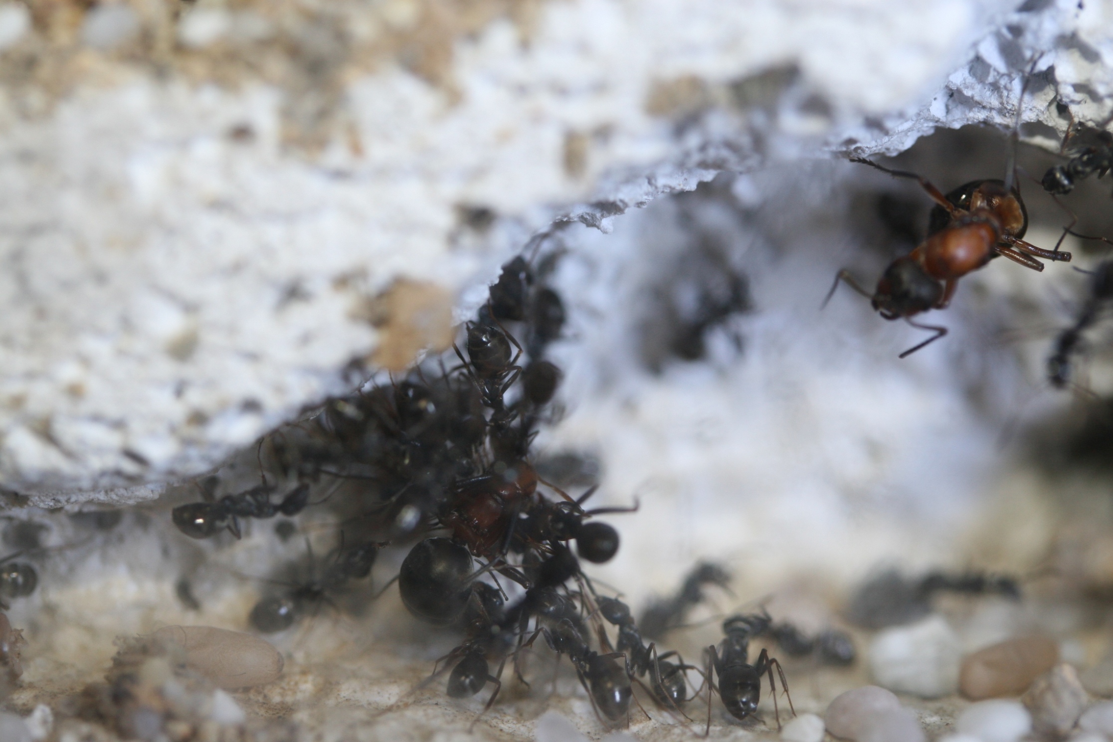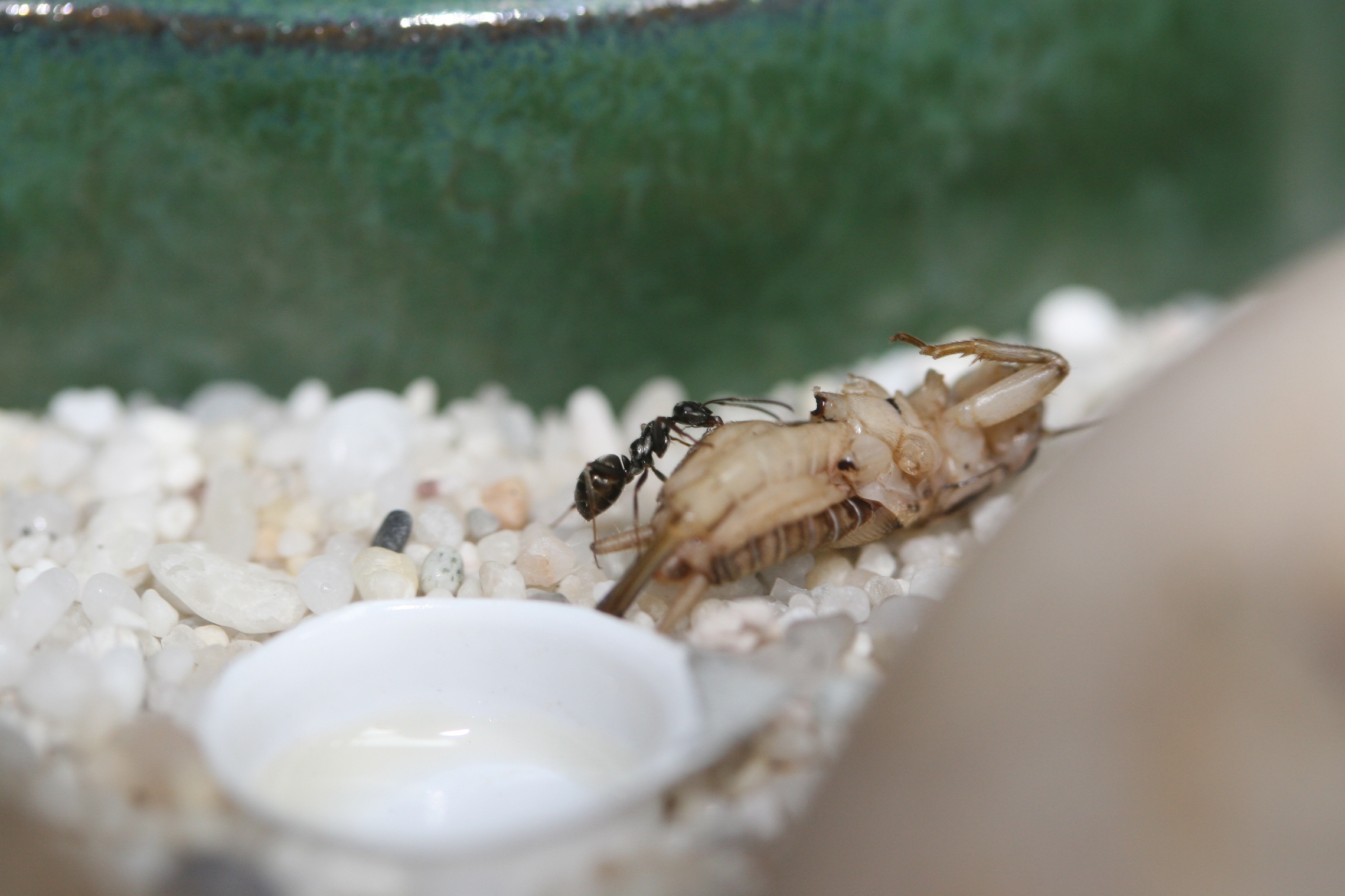 Außerdem hatte ich mich dann doch dazu entschlossen sie in einen kleineren Ytong umziehen zu lassen, da sie die leeren Geschlechtstierpuppen nicht mehr abtransportierten. Die waren mittlerweile durch den Schimmel mehr oder weniger zusammengewachsen.